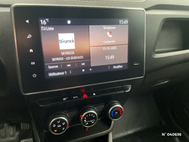 Siège passager standard / Roues tôlées 15" / Sans protection de plancher / Boucliers AV/AR, rétroviseurs et baguettes latérales noir grainé / Contrôle dynamique de trajectoire (ESP) avec aide au démarrage en côte / ABS + EBV (répartiteur électronique de freinage) / Peinture opaque / Ceintures de sécurité avant 3 points avec double prétensionneur et limiteur d'effort / Siège sans Isofix / Lève-vitre conducteur impulsionnel / Enjoliveur CARTEN / Noir titane / Sellerie tissu INTI Black structure / Radio DAB Connect R&GO / Critère technique 03 / Cloison complète vitrée