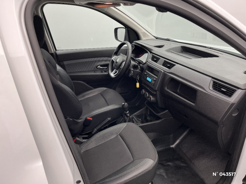 Cloison complète vitrée / Siège passager standard / Roues tôlées 15" / Sans protection de plancher / Boucliers AV/AR, rétroviseurs et baguettes latérales noir grainé / Ceintures de sécurité avant 3 points avec double prétensionneur et limiteur d'effort / Radio DAB Connect R&GO (Bluetooth, USB) / Siège sans Isofix / Lève-vitre conducteur impulsionnel / Enjoliveur CARTEN / Noir titane / Sellerie tissu INTI Black structure / Contrôle dynamique de trajectoire (ESP) avec aide au démarrage en côte / ABS + EBV (répartiteur électronique de freinage) / Peinture opaque