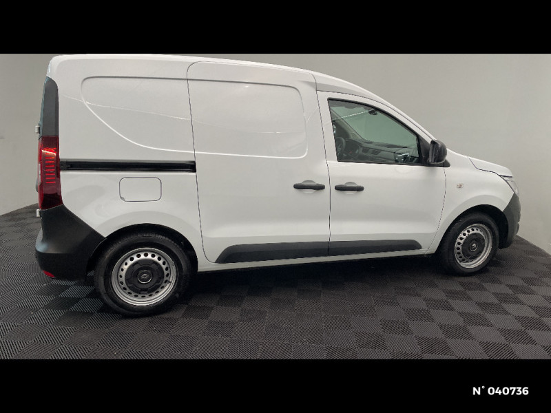 Siège passager standard / Roues tôlées 15" / Sans protection de plancher / Boucliers AV/AR, rétroviseurs et baguettes latérales noir grainé / Contrôle dynamique de trajectoire (ESP) avec aide au démarrage en côte / ABS + EBV (répartiteur électronique de freinage) / Peinture opaque / Ceintures de sécurité avant 3 points avec double prétensionneur et limiteur d'effort / Radio DAB Connect R&GO (Bluetooth, USB) / Siège sans Isofix / Cloison complète vitrée / Lève-vitre conducteur impulsionnel / Enjoliveur CARTEN / Noir titane / Sellerie tissu INTI Black structure