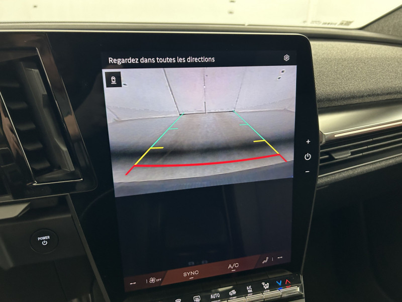 2 feux de recul / Airbags latéraux, milieu AV et rideaux / Alerte détection de fatigue / Alerte d'oubli de ceinture de sécurité / Alerte et prévention sortie de voie (dont urgence) / Antenne Requin / Avertisseur de distance de sécurité / Boîte de vitesse Automate à fonction continue / Bouclier AV sport avec lame F1 / Câble pour borne de recharge (mode 3 type 2 triphasé, 5m) / Caméra de recul digitale haute définition / Carte Renault accès et démarrage mains libres / Changement d'intensité du freinage régénératif par palettes / Chargeur AC 11 kW triphasé / Clignotants défilants / Commutation automatique des feux de route/croisement / Console de rangement haute avec accoudoir central coulissant / Contrôle de la traction (TCS) / Freinage automatique d'urgence en ville pour deux roues et piétons / Gestion automatique des feux diurnes et des essuie-glaces / Hayon motorisé / Jantes alliage diamantées en noir brillant 19" streamline / Kit de gonflage / Maintenance connectée, incluse pendant 8 ans / Mise à jour système (via firmware over the air FOTA), inclus pendant 5 ans / Multi-sense / Notice d'utilisation digitale embarqué dans le système multimédia du véhicule / Pack contrôle à distance (via l'application My Renault), inclus pendant 5 ans / Pavillon et montants / Pompe à chaleur / Prédisposition éthylotest / Projecteurs full LED directionnels avec fonction antibrouillard / Réplication smartphone / Rétroviseur jour/nuit automatique / Sellerie tissu recyclé gris chiné/textile refined noir titane et surpiqûres jaunes / Sièges avec système ISOFIX + Tether / Sièges AV manuels avec réglable en hauteur conducteur / Signature lumineuse AV / Système d'optimisation de la température batterie (charge rapide DC) / Système Multimédia openR link 12" : Google intégré, préconditionnement batterie pour charge DC, audio Arkamys Auditorium / Tableau de bord full numérique / Volant en textile refined biosourcé / / Véhicules équivalents: C4 Space Tourer - Lodgy - 3008