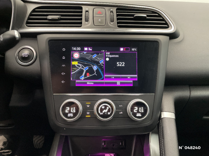 Rétroviseur intérieur électrochrome / Aérateurs aux places AR / Essuie-vitre et allumage des phares automatiques / Système Ecomode / Peinture opaque / Cartographie Europe / Rétroviseurs extérieurs ton carrosserie / Sellerie TEP / tissu noir titane / R-Link 2 avec radio digitale, navigation et écran tactile 7'' / Jantes alliage 19'' diamantées bi-ton Yohan / Joncs chromés sur les protections inférieures de portes / Barres de toit longitudinales aspect chrome / Pare-soleil conducteur et passager avec miroir éclairés / Indicateur de changement de vitesse / Badge Renault mains libres / Alerte d'oubli de ceinture de sécurité / ESC avec ASR / Kit de réparation / Projecteurs AV avec guides de lumière intégrés / Banquette AR rabattable 1/3 - 2/3 avec fonction "Easy Break" / Harmonie Carbone foncé / Projecteurs AV full LED Pure Vision / Compatible Android Auto et Apple CarPlay / Projecteurs antibrouillard à LED avec finitions chromées / Eclairage du vide poche central / Rétroviseurs avec lumière d'accueil / Sièges avant avec réglage lombaire et réglage de la longeur d'assise