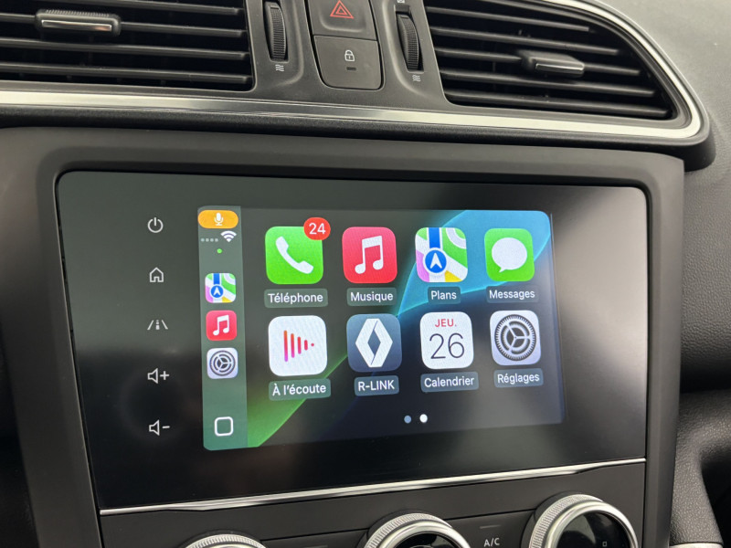 Essuie-vitre et allumage des phares automatiques: / Jantes alliage 18'' Fleuron diamantées Noir: / Projecteurs antibrouillard à LED avec finitions chromées: / Projecteurs AV full LED Pure Vision: / R-Link 2 avec radio digitale, navigation et écran tactile 7'': / Alerte d'oubli de ceinture de sécurité: / Aérateurs aux places AR: / Badge Renault mains libres: / Banquette AR rabattable 1/3 - 2/3 avec fonction "Easy Break": / Barres de toit longitudinales aspect chrome: / Cartographie Europe: / Ciel de toit Gris Clair: / Compatible Android Auto et Apple CarPlay: / Eclairage du vide poche central: / ESC avec ASR: / Harmonie Carbone foncé: / Indicateur de changement de vitesse: / Joncs chromés sur les protections inférieures de portes: / Kit de réparation: / Pare-soleil conducteur et passager avec miroir éclairés: / Pneu Différent 18'': / Projecteurs AV avec guides de lumière intégrés: / Rétroviseur intérieur électrochrome: / Rétroviseurs avec lumière d'accueil: / Rétroviseurs extérieurs ton carrosserie: / Sièges AV réglables en hauteur + mise en tablette du siège passager: / Système Ecomode: / Sellerie TEP / tissu noir titane: / / Véhicules équivalents: 3008 - CX5 - C3 Aircross