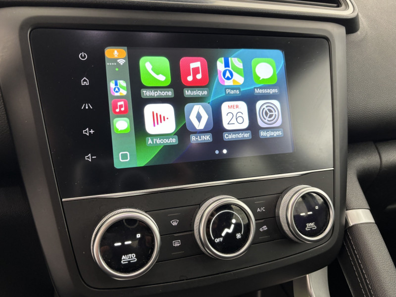Essuie-vitre et allumage des phares automatiques: / Jantes alliage 18'' Fleuron diamantées Noir: / Projecteurs antibrouillard à LED avec finitions chromées: / Projecteurs AV full LED Pure Vision: / R-Link 2 avec radio digitale, navigation et écran tactile 7'': / Alerte d'oubli de ceinture de sécurité: / Aérateurs aux places AR: / Badge Renault mains libres: / Banquette AR rabattable 1/3 - 2/3 avec fonction "Easy Break": / Barres de toit longitudinales aspect chrome: / Cartographie Europe: / Ciel de toit Gris Clair: / Compatible Android Auto et Apple CarPlay: / Eclairage du vide poche central: / ESC avec ASR: / Harmonie Carbone foncé: / Indicateur de changement de vitesse: / Joncs chromés sur les protections inférieures de portes: / Kit de réparation: / Pare-soleil conducteur et passager avec miroir éclairés: / Pneu Différent 18'': / Projecteurs AV avec guides de lumière intégrés: / Rétroviseur intérieur électrochrome: / Rétroviseurs avec lumière d'accueil: / Rétroviseurs extérieurs ton carrosserie: / Sièges AV réglables en hauteur + mise en tablette du siège passager: / Système Ecomode: / Sellerie TEP / tissu noir titane: / / Véhicules équivalents: 3008 - CX5 - C3 Aircross