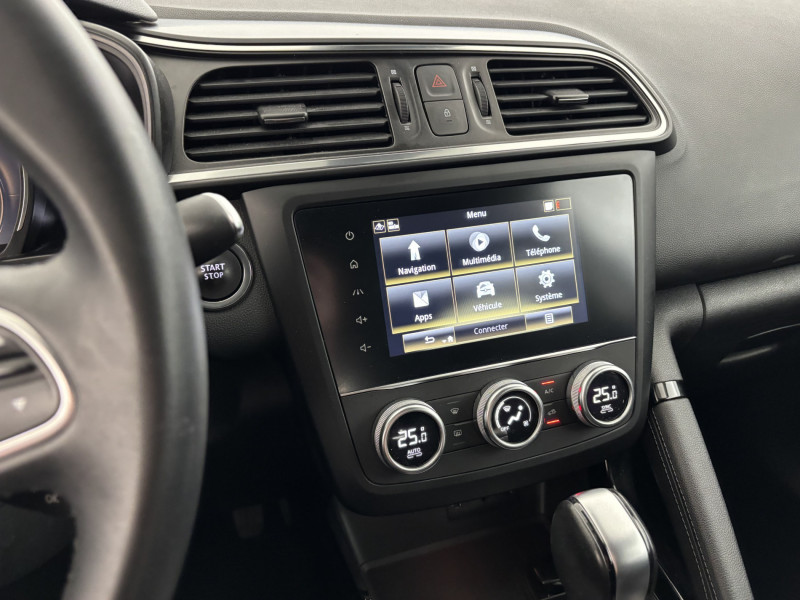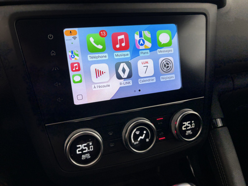 Essuie-vitre et allumage des phares automatiques: / R-Link 2 avec radio digitale, navigation et écran tactile 7'': / Alerte d'oubli de ceinture de sécurité: / Badge Renault mains libres: / Banquette AR rabattable 1/3 - 2/3 avec fonction "Easy Break": / Cartographie Europe: / Ciel de toit Gris Clair: / Compatible Android Auto et Apple CarPlay: / Eclairage du vide poche central: / ESC avec ASR: / Harmonie Carbone foncé: / Indicateur de changement de vitesse: / Joncs chromés sur les protections inférieures de portes: / Kit de réparation: / Pare-soleil conducteur et passager avec miroir éclairés: / Projecteurs AV avec guides de lumière intégrés: / Rétroviseurs extérieurs ton carrosserie: / Système Ecomode: / Sellerie Tissu carbone foncé: / / Véhicules équivalents: 3008 - CX5 - C3 Aircross