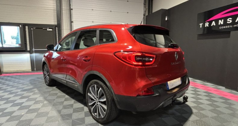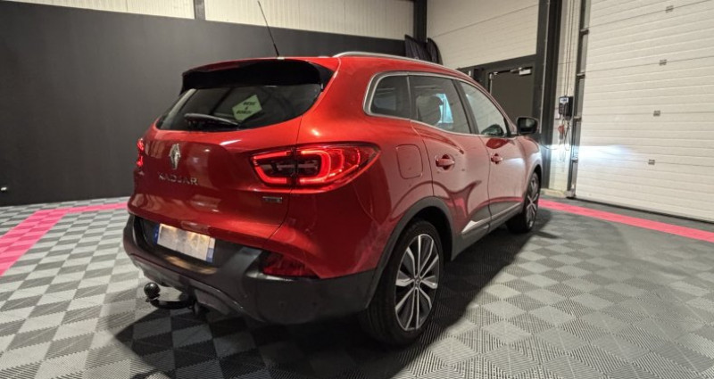Cylindrée : 1500 cm3 EQUIPEMENTS L'agence TransakAuto Valence, vous propose cette RENAULT KADJAR EDITION BOSE, 1.5 DCi 110 CV, 6 CV FISCAUX, ROUGE, 5 portes, mise en circulation le 04/11/2015. Véhicule visible uniquement sur rendez-vous dans votre agence TransakAuto Valence sièges chauffants - attelage - sièges cuir électriques OPTIONS ET ÉQUIPEMENTS : EXTERIEUR ET CHASSIS -2 roues motrices -Aide parking avant et arrière -Attelage -Barres de toit -Frein de parking automatique -Jantes au 19 -Projecteurs bi-xénon -Rétroviseurs électriques -Toit panoramique INTERIEUR ET CONFORT -4 vitres électriques -5 places -Accoudoir central avant -Banquette 1/3 - 2/3 -Banquette fractionnable -Boîte automatique -Caméra de recul -Clé main libre -Climatisation automatique multi-zones -Démarrage sans clef -Drive select -Écran tactile -Fermeture électrique automatique -GPS tactile -Intérieur cuir -Kit téléphone mains libres -Prises USB et auxiliaires -Régulateur de vitesse -Rétroviseur intérieur électrochrome -Rideaux pare-soleil -Sièges chauffants -Sièges électriques -Sièges réglables en hauteur -Volant cuir -Volant multifonctions -Volant réglable en hauteur et profondeur SECURITE -Airbags -ABS -Aide au démarrage en côte -Anti-patinage -Connexion SOS -ESP -Essuie-glaces automatiques -Feux automatiques -Fixations ISOFIX -Phares avant de jour à LED -Projecteurs anti-brouillard AUTRE -Factures d?entretien -Kit de réparation anti-crevaison -2 clés - Prix hors frais de mise à la route et carte grise. - Des erreurs pouvant se glisser dans nos annonces, merci de nous contacter pour confirmer les informations - Reportage photo complet disponible sur demande. Garantie assimilée constructeur de 3 à 36 mois possible. Véhicule préparé intérieur et extérieur par préparateur professionnel Véhicule avec factures d'entretien et Histovec - Nos services : * Gestion des formalités administratives et demande de carte grise * Livraison possible dans toute la France - * TRANSAKAUTO ? Réseau national ? Courtier Automobile pour les particuliers et professionnels * Rejoignez-nous sur Instagram : TRANSAKAUTO FRANCE. * Plus de 200 agences à votre disposition dans toute la France pour acheter ou vendre votre véhicule d'occasion ! - Véhicule visible uniquement sur rendez-vous dans votre agence TransakAuto Valence : 505 Allée René Higonnet, 26760 Beaumont-lès-Valence Contactez-nous pour plus d?informations ou pour planifier un rendez-vous. - * Pour les trajets courts, privilégiez la marche ou le vélo. AUTRES EQUIPEMENTS - Puissance reelle : 110 - Consommation extraurbaine : 0.00 - Consommation mixte : 0.00 - Consommation urbaine : 0.00