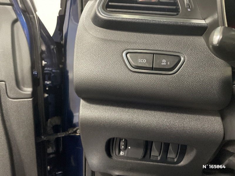 Système Ecomode / Pare-soleil conducteur et passager avec miroir éclairés / Cartographie Europe / Rétroviseurs extérieurs ton carrosserie / Rétroviseur intérieur électrochrome / Aérateurs aux places AR / Essuie-vitre et allumage des phares automatiques / Indicateur de changement de vitesse / Badge Renault mains libres / Alerte d'oubli de ceinture de sécurité / ESC avec ASR / Kit de réparation / Projecteurs AV avec guides de lumière intégrés / Banquette AR rabattable 1/3 - 2/3 avec fonction "Easy Break" / Sièges AV réglables en hauteur + mise en tablette du siège passager / Harmonie Carbone foncé / Projecteurs AV full LED Pure Vision / Compatible Android Auto et Apple CarPlay / Projecteurs antibrouillard à LED avec finitions chromées / Eclairage du vide poche central / Rétroviseurs avec lumière d'accueil / Sièges avant avec réglage lombaire et réglage de la longeur d'assise / Sellerie TEP / tissu noir titane / R-Link 2 avec radio digitale, navigation et écran tactile 7'' / Jantes alliage 19'' diamantées bi-ton Yohan / Joncs chromés sur les protections inférieures de portes / Jantes alliage 18'' diamantées Noir / Pneu Différent 18'' / Barres de toit longitudinales aspect chrome