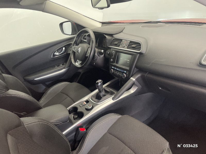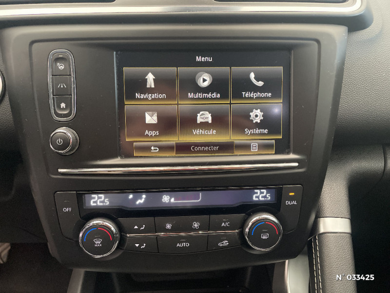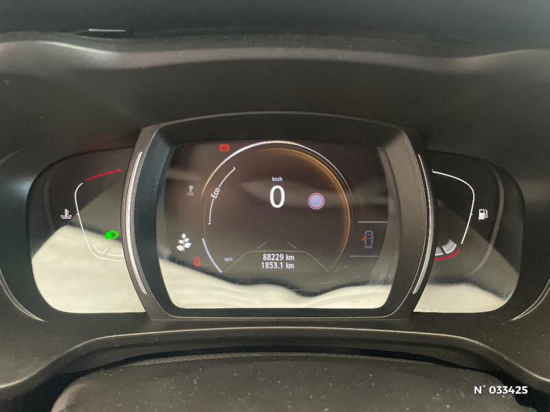 Peinture Blanc Glacier / Sellerie Mixte simili cuir / tissu carbone foncé / Renault R-Link 2 / Alerte d'oubli de ceinture de sécurité / ESC avec ASR / Kit de réparation / Projecteurs AV avec guides de lumière intégrés / Easy Park Assist Caméra de recul et aide au parking AV et AR / Projecteurs AV full LED Pure Vision / Banquette AR rabattable 1/3 - 2/3 avec fonction "Easy Break" / Sièges AV réglables en hauteur + mise en tablette du siège passager / Insert chromé sur les protections inférieures de portes / Déconnection airbag passager AV / Barres de toit longitudinales aspect chrome / Cartographie Europe / ABS + AFU