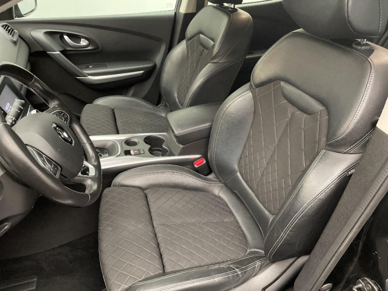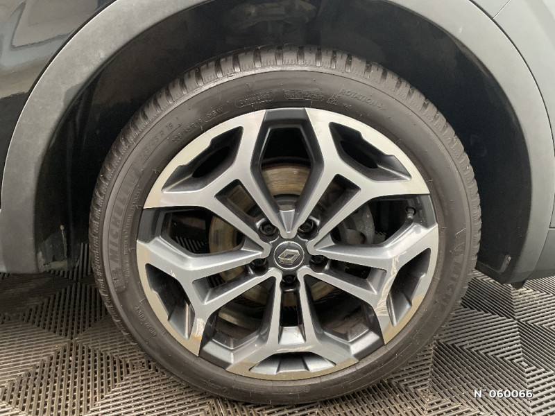 Sellerie TEP / tissu noir titane / R-Link 2 avec radio digitale, navigation et écran tactile 7'' / Sièges AV réglables en hauteur + mise en tablette du siège passager / Harmonie Carbone foncé / Projecteurs AV full LED Pure Vision / Compatible Android Auto et Apple CarPlay / Projecteurs antibrouillard à LED avec finitions chromées / Eclairage du vide poche central / Rétroviseurs avec lumière d'accueil / Sièges avant avec réglage lombaire et réglage de la longeur d'assise / Cartographie Europe / Rétroviseurs extérieurs ton carrosserie / Rétroviseur intérieur électrochrome / Aérateurs aux places AR / Essuie-vitre et allumage des phares automatiques / Système Ecomode / Pare-soleil conducteur et passager avec miroir éclairés / Indicateur de changement de vitesse / Badge Renault mains libres / Alerte d'oubli de ceinture de sécurité / ESC avec ASR / Kit de réparation / Projecteurs AV avec guides de lumière intégrés / Banquette AR rabattable 1/3 - 2/3 avec fonction "Easy Break" / Jantes alliage 19'' diamantées bi-ton Yohan / Joncs chromés sur les protections inférieures de portes / Jantes alliage 18'' diamantées Noir / Pneu Différent 18'' / Jantes alliage 18'' Fleuron diamantées Noir / Ciel de toit Gris Clair / Barres de toit longitudinales aspect chrome