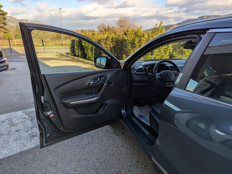 Aide au stationnement avant et arrière + caméra de recul / Airbags rideaux de tête aux places avant et arrière / Banquette arrière rabattable 1/3-2/3 avec fonction EasyBreak / Barres de toit longitudinales chromées / Carte Renault avec accès et démarrage mains-libres avec fermeture à l?éloignement / Ceinture centrale arrière 3 points / Clignotant à impulsion / Coffre compartimentable / Commutation automatique des feux de route / Condamnation portières arrière mécanique / Détecteur de pluie et allumage automatique des projecteurs / Easy Park Assist / Eclairage de coffre / Entourage de vitres chromé / Indicateur de changement de vitesses / Insert chromé sur les protections inférieures de portes / Instrumentation TFT couleur 7" / Kit de réparation de pneus / Levier de vitesse avec insert chromé / Pack R-Link 2 / Pack Sécurité / Passage de roues et boucliers avant et arrière plastique injecté / Poches aumônières au dos des sièges avant / Poignées de portes couleur carrosserie / Pommeau de levier de vitesses en cuir / Pré-équipement alarme / Prises 12 volts à l'avant et sur la console centrale au rang 2 / Programme Eco-mode / Projecteurs avant avec guides de lumière intégrés / Projecteurs avant Full Led Pure Vision / Réglage lombaire du siège conducteur / Siège mixte similicuir / tissu Noir Titane / Siège passager réglable en hauteur et avec mise en tablette / Skis avant et arrière Gris Erbé brillant / Spots de lecture avant et arrière / Surtapis / Système de contrôle de trajectoire (ESC) et fonction antipatinage (ASR) / Témoin d'oubli de ceintures