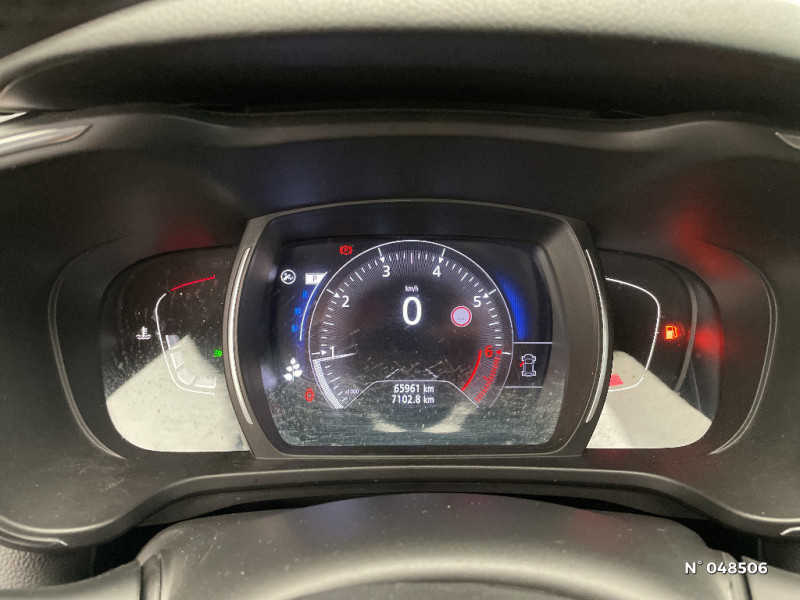 Sellerie TEP / tissu noir titane / R-Link 2 avec radio digitale, navigation et écran tactile 7'' / Jantes alliage 19'' diamantées bi-ton Yohan / Joncs chromés sur les protections inférieures de portes / Barres de toit longitudinales aspect chrome / Rétroviseur intérieur électrochrome / Aérateurs aux places AR / Essuie-vitre et allumage des phares automatiques / Système Ecomode / Peinture opaque / Pare-soleil conducteur et passager avec miroir éclairés / Indicateur de changement de vitesse / Badge Renault mains libres / Alerte d'oubli de ceinture de sécurité / ESC avec ASR / Kit de réparation / Projecteurs AV avec guides de lumière intégrés / Banquette AR rabattable 1/3 - 2/3 avec fonction "Easy Break" / Harmonie Carbone foncé / Cartographie Europe / Rétroviseurs extérieurs ton carrosserie / Projecteurs AV full LED Pure Vision / Compatible Android Auto et Apple CarPlay / Projecteurs antibrouillard à LED avec finitions chromées / Eclairage du vide poche central / Rétroviseurs avec lumière d'accueil / Sièges avant avec réglage lombaire et réglage de la longeur d'assise