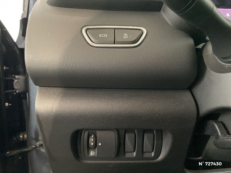 Harmonie Carbone foncé / Indicateur de changement de vitesse / Jantes alliage 17'' Aquila diamantées Noir / Jantes alliage 17'' Aquila diamantées Noir / Joncs chromés sur les protections inférieures de portes / Kit de réparation / Nouvelle Gamme 2022 / Pare-soleil conducteur et passager avec miroir éclairés / Peinture opaque / Projecteurs AV avec guides de lumière intégrés / R-Link 2 avec radio digitale, navigation, écran tactile 7'', compatible Android AutoTM/Apple CarPlay / R-Link 2 avec radio digitale, navigation et écran tactile 7'' / Sellerie Tissu carbone foncé / Système Ecomode / Alerte d'oubli de ceinture de sécurité / Antenne requin / Banquette AR rabattable 1/3 - 2/3 avec fonction "Easy Break" / Cartographie Europe / Ciel de toit Gris Clair / Classe energetique D / Compatible Android Auto et Apple CarPlay / Coques de rétroviseurs noir brillant / Eclairage du vide poche central / ESC avec ASR / Essuie-vitre et allumage des phares automatiques