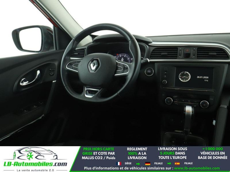 Référence : 1167587 Vos Avantages chez LB-AUTOMOBILES.com / Prix affiché TTC Livré hors carte grise / Livraison sous 10 jours dans toute la France hors 31 / Pas d?avance de frais paiement du véhicule 100% à la livraison par virement. Renault Kadjar Neuf remisée, Renault Kadjar Occasion Toulouse Beaupuy 31850, Renault Kadjar Véhicule sorti de réseau collaborateur, Renault Kadjar import, Renault Kadjar importateur, Renault Kadjar Livraison possible dans toute la France sous 5 jours, Renault Kadjar, Renault Kadjar Location Option Achat, Renault Kadjar LLD, Renault Kadjar Longue Durée, Renault Kadjar TVA récupérable. Possibilité d'extension de garantie 12, 24,36 mois, Pour tout autres voitures import neufs ou occasions collaborateur fortement remisée, Mandataire Audi, Mandataire BMW, Mandataire Volkswagen, Mandataire Mercedes, Mandataire Peugeot Espagne, Mandataire Renault Espagne, Porsche import, Mandataire Citroën Espagne, Mandataire Seat Espagne, n'hésitez pas à nous contacter. « Sous réserve de vente préalable et erreur de saisie » Principaux équipements : - ABS - Accoudoir - Antidémarrage - Assistance de démarrage en côte - Assistant d'angle mort - Bluetooth - Capteur de lumière - Capteur de pluie - Contrôle de la pression des pneus - Direction assistée - Écran tactile - ESP - Fermeture centralisée - Feux de jour LED - Galerie de toit - Garantie - GPS - Grille de protection pour coffre - Isofix - Jantes alliage - Kit de réparation d'urgence des pneus - Kit mains libres - Ordinateur de bord - Phare antibrouillard - Pneus toutes saisons - Port USB - Régulateur de vitesse - Rétroviseur extérieur électrique - Rétroviseurs extérieurs rabattables électriquement - Révision complète - Sièges chauffants - Support lombaire - Système antipatinage - Système de limitation de la vitesse - Système Stop & Start - Traction avant - Tuner/radio - Véhicule non-fumeur - Verrouillage centralisé sans clé - Vitres électriques - Volant en cuir - Volant multifonction