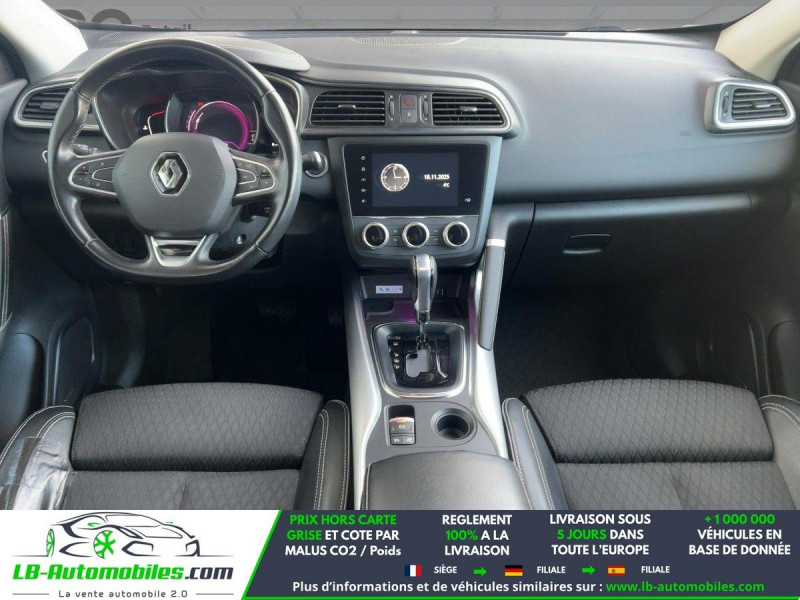 Référence : 1186226 Vos Avantages chez LB-AUTOMOBILES.com / Prix affiché TTC Livré hors carte grise / Livraison sous 10 jours dans toute la France hors 31 / Pas d?avance de frais paiement du véhicule 100% à la livraison par virement. Renault Kadjar Neuf remisée, Renault Kadjar Occasion Toulouse Beaupuy 31850, Renault Kadjar Véhicule sorti de réseau collaborateur, Renault Kadjar import, Renault Kadjar importateur, Renault Kadjar Livraison possible dans toute la France sous 5 jours, Renault Kadjar, Renault Kadjar Location Option Achat, Renault Kadjar LLD, Renault Kadjar Longue Durée, Renault Kadjar TVA récupérable. Possibilité d'extension de garantie 12, 24,36 mois, Pour tout autres voitures import neufs ou occasions collaborateur fortement remisée, Mandataire Audi, Mandataire BMW, Mandataire Volkswagen, Mandataire Mercedes, Mandataire Peugeot Espagne, Mandataire Renault Espagne, Porsche import, Mandataire Citroën Espagne, Mandataire Seat Espagne, n'hésitez pas à nous contacter. « Sous réserve de vente préalable et erreur de saisie » Principaux équipements : - ABS - Accoudoir - Antidémarrage - Assistance de démarrage en côte - Assistant d'angle mort - Assistant feux de route - Avertisseur de franchissement de ligne - Bluetooth - Capteur de lumière - Capteur de pluie - Contrôle de la pression des pneus - Diesel avec filtre à particules - Direction assistée - Éclairage d'ambiance - Écran tactile - ESP - Fermeture centralisée - Feux de jour LED - Galerie de toit - Garantie - GPS - Isofix - Jantes alliage - Kit de réparation d'urgence des pneus - Kit mains libres - Ordinateur de bord - Package hiver - Pack fumeur - Phare antibrouillard - Phares LED - Pneus été - Port USB - Radio DAB - Régulateur de vitesse - Rétroviseur extérieur électrique - Rétroviseur intérieur anti-éblouissement automatique - Sièges chauffants - Support lombaire - Système antipatinage - Système de limitation de la vitesse - Système de nettoyage des phares - Système de reconnaissance des panneaux de signalisation - Système de sonorisation - Système Stop & Start - Toit panoramique - Traction avant - Tuner/radio - Véhicule non-fumeur - Verrouillage centralisé sans clé - Vitres électriques - Vitres teintées - Volant en cuir - Volant multifonction