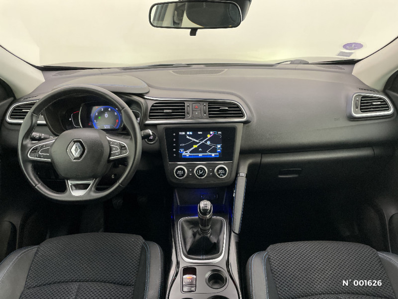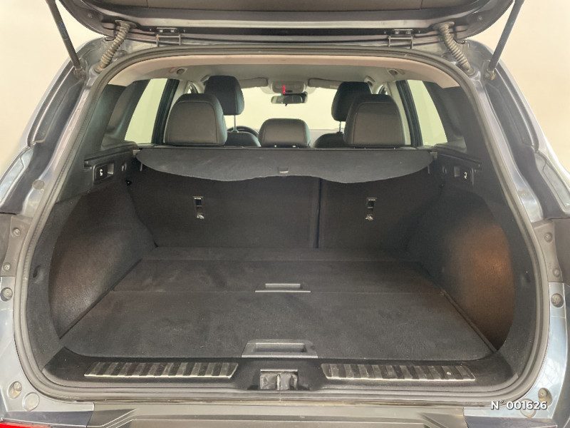 Indicateur de changement de vitesse / Badge Renault mains libres / Barres de toit longitudinales aspect chrome / Alerte d'oubli de ceinture de sécurité / ESC avec ASR / Kit de réparation / Projecteurs AV avec guides de lumière intégrés / Banquette AR rabattable 1/3 - 2/3 avec fonction "Easy Break" / Sièges AV réglables en hauteur + mise en tablette du siège passager / Harmonie Carbone foncé / Compatible Android Auto et Apple CarPlay / Eclairage du vide poche central / Jantes alliage 18'' diamantées bi-ton Fleuron / Sellerie TEP / tissu fond bleu / R-Link 2 avec radio bi-tuner, navigation et écran tactile 7'' / Joncs chromés sur les protections inférieures de portes / Cartographie Europe / Rétroviseurs extérieurs ton carrosserie / Essuie-vitre et allumage des phares automatiques / Système Ecomode / Peinture opaque / Pare-soleil conducteur et passager avec miroir éclairés