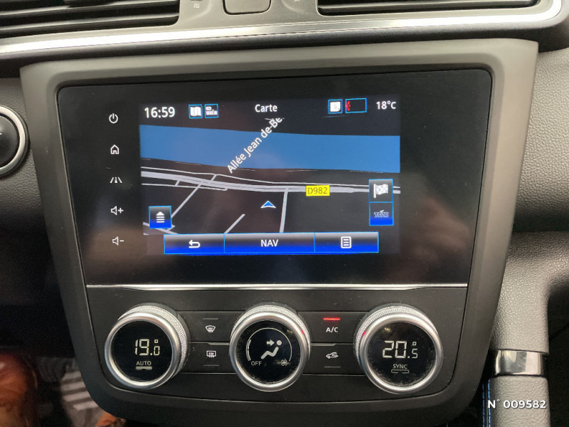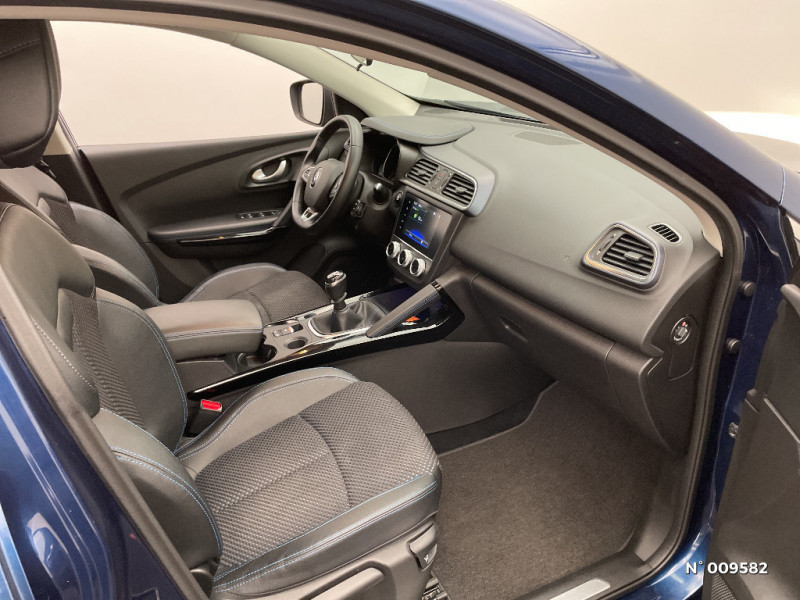 Sellerie TEP / tissu fond bleu / Sièges AV réglables en hauteur + mise en tablette du siège passager / Système Ecomode / Banquette AR rabattable 1/3 - 2/3 avec fonction "Easy Break" / Barres de toit longitudinales aspect chrome / Alerte d'oubli de ceinture de sécurité / Alerte d'oubli de ceinture de sécurité / Badge Renault mains libres / Cartographie Europe / Compatible Android Auto et Apple CarPlay / Eclairage du vide poche central / ESC avec ASR / Essuie-vitre et allumage des phares automatiques / Harmonie Carbone foncé / Indicateur de changement de vitesse / Jantes alliage 18'' diamantées bi-ton Fleuron / Joncs chromés sur les protections inférieures de portes / Kit de réparation / Pare-soleil conducteur et passager avec miroir éclairés / Peinture opaque / Projecteurs AV avec guides de lumière intégrés / Rétroviseurs extérieurs ton carrosserie / R-Link 2 avec radio bi-tuner, navigation et écran tactile 7''