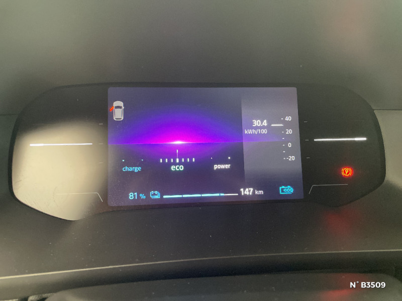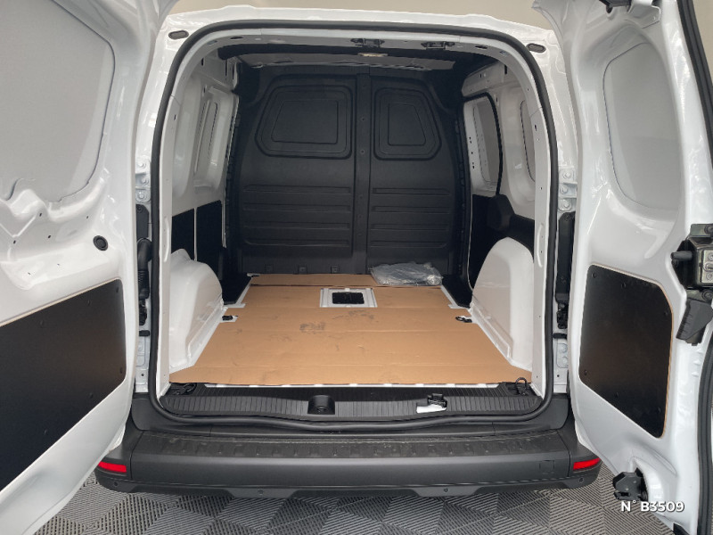 Panneau latéral gauche tolé / Peinture opaque / Poignées de portes Noir Grainé / Portes AR 180° tôlées / Prédisposition ethylotest / Prise 12V en zone de chargement / Rack de rangement au-dessus des places AV (Capucine) / Siège passager rabattable et repliable formant plancher plat / Déconnexion de l'airbag passager / Cloison complète fixe / Console rangement central avec accoudoir / Contrôle de traction (TCS) / Contrôle dynamique de trajectoire (ESP) avec aide au démarrage en côte / Aide au maintien dans la voie / Alerte sonore de survitesse ( reconnaissance panneau limitation vitesse) / Alerte vigilance conducteur / Boîte de vitesses Automate à fonction continue / Câble de recharge(6m) mode 3 / Charge 11kW / Clé 3 boutons rétractable / Habillage latéral mi hauteur en isorel / Intérieur noir titan / Kit de gonflage / Lève-vitres AV électriques, impulsionnel à la descente et remontée côté conducteur / EASY LINK écran 8" sans navigation / Eclairage LED dans la zone de chargement / Enjoliveur carten 16" / Feux de jour LED C-Shape intégrés aux projecteurs AV / Tapis habitacle en caoutchouc / Tableau de bord digital 7"