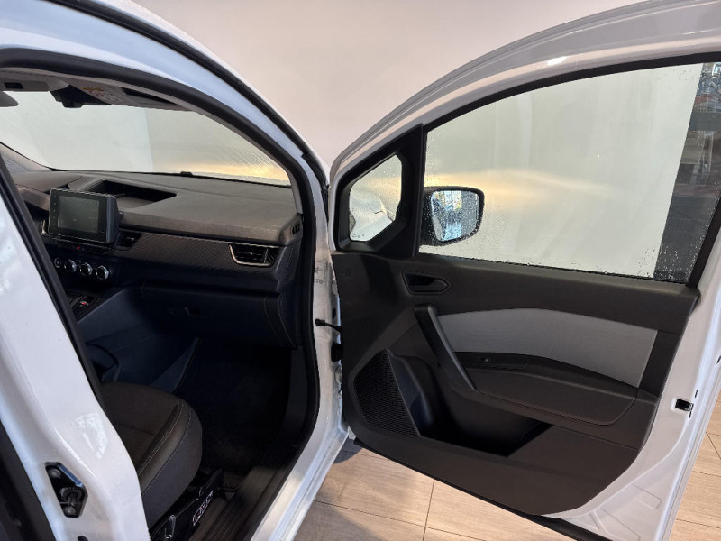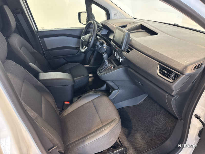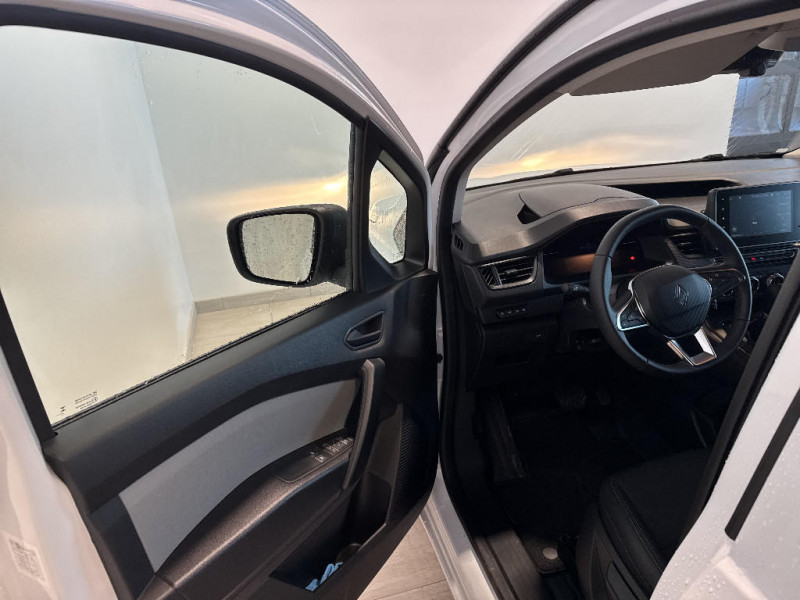 Intérieur noir titan / 4 points d'ancrage latéraux dans la zone de chargement / Lève-vitres AV électriques, impulsionnel à la descente et remontée côté conducteur / Miroir grand angle / Panneau latéral gauche tolé / Aide au parking AV/AR et latérale / Alerte sonore de survitesse ( reconnaissance panneau limitation vitesse) / Alerte vigilance conducteur / Boîte de vitesses Automate à fonction continue / Câble de recharge(6m) mode 3 / Carte accès et démarrage mains libres avec fonction zoning / Charge 11kW / Cloison complète fixe / Console rangement central avec accoudoir / Contrôle de traction (TCS) / Contrôle dynamique de trajectoire (ESP) avec aide au démarrage en côte / Critère GTR EVS / Critère GTR EVS / Déconnexion de l'airbag passager / Aide au maintien dans la voie / EASY LINK Ecran 8" avec Navigation / Eclairage LED dans la zone de chargement / Enjoliveur carten 16" / Feux de jour LED C-Shape intégrés aux projecteurs AV / Habillage latéral mi hauteur en isorel / Poignées de portes AV ton caisse / Portes AR 180° tôlées / Prédisposition ethylotest / Prise 12V en zone de chargement / Rack de rangement au-dessus des places AV (Capucine) / Rail PLC ton caisse / Rétroviseurs extérieurs électriques, dégivrants et rabattables / Siège passager rabattable et repliable formant plancher plat / Tableau de bord digital 7" / Tapis habitacle en caoutchouc / Volant textile enduit grainé / Kit de gonflage