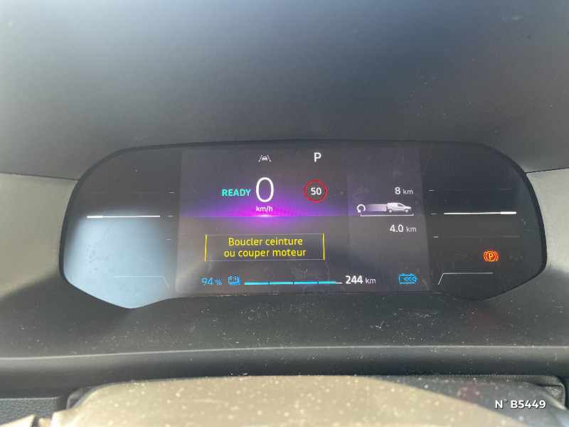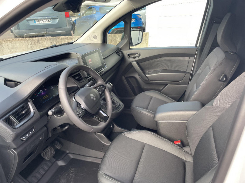 Siège passager rabattable et repliable formant plancher plat / Tableau de bord digital 7" / Tapis habitacle en caoutchouc / Cloison complète fixe / Console rangement central avec accoudoir / Contrôle de traction (TCS) / Contrôle dynamique de trajectoire (ESP) avec aide au démarrage en côte / Déconnexion de l'airbag passager / EASY LINK écran 8" sans navigation / Eclairage LED dans la zone de chargement / Enjoliveur carten 16" / Feux de jour LED C-Shape intégrés aux projecteurs AV / Habillage latéral mi hauteur en isorel / Intérieur noir titan / Kit de gonflage / Lève-vitres AV électriques, impulsionnel à la descente et remontée côté conducteur / Panneau latéral gauche tolé / Peinture opaque / Poignées de portes Noir Grainé / Aide au maintien dans la voie / Alerte sonore de survitesse ( reconnaissance panneau limitation vitesse) / Alerte vigilance conducteur / Boîte de vitesses Automate à fonction continue / Câble de recharge(6m) mode 3 / Chargeur 22kW/80kW / Clé 3 boutons rétractable / Portes AR 180° tôlées / Prédisposition ethylotest / Prise 12V en zone de chargement / Rack de rangement au-dessus des places AV (Capucine)