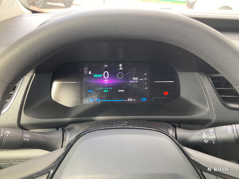 Enjoliveur carten 16" / Feux de jour LED C-Shape intégrés aux projecteurs AV / Habillage latéral mi hauteur en isorel / Intérieur noir titan / Kit de gonflage / Lève-vitres AV électriques, impulsionnel à la descente et remontée côté conducteur / Panneau latéral gauche tolé / Peinture opaque / Poignées de portes Noir Grainé / Portes AR 180° tôlées / Prédisposition ethylotest / Prise 12V en zone de chargement / Rack de rangement au-dessus des places AV (Capucine) / Siège passager rabattable et repliable formant plancher plat / Tableau de bord digital 7" / Tapis habitacle en caoutchouc / Aide au maintien dans la voie / Alerte sonore de survitesse ( reconnaissance panneau limitation vitesse) / Alerte vigilance conducteur / Boîte de vitesses Automate à fonction continue / Câble de recharge(6m) mode 3 / Chargeur 22kW/80kW / Clé 3 boutons rétractable / Cloison complète fixe / Console rangement central avec accoudoir / Contrôle de traction (TCS) / Contrôle dynamique de trajectoire (ESP) avec aide au démarrage en côte / Déconnexion de l'airbag passager / EASY LINK écran 8" sans navigation / Eclairage LED dans la zone de chargement