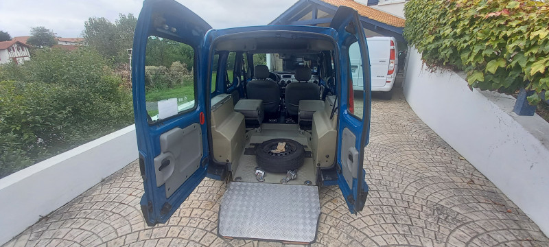 RENAULT KANGOO I Beack PMR Phase 2 - 1.i 95cv boite automatique Nous mettons en vente ce véhicule Renault Kangoo PMR ( personne a mobilité réduite ) de 2005 qui compte 186000 km au compteur. LE CONTROLE TECHNIQUE A ETE FAIT. Ce véhicule est équipé de 5 portes et peut accueillir jusqu'à 5 passagers. Il est doté d'une boîte de vitesses automatique et fonctionne à l'essence. La voiture est de couleur bleue et est en bon état général. Idéal pour les personnes à mobilité réduite, ce Kangoo PMR est prêt à vous accompagner dans vos déplacements en toute sécurité. Il dispose d'une rampe électrique munie d'une télécommande pour que puisse monter en tout sécurité une personne en fauteuil roulant. Un système de fixation du fauteuil est intégré a la voiture.