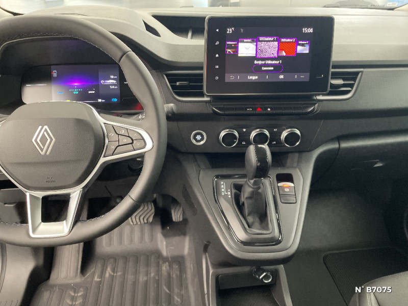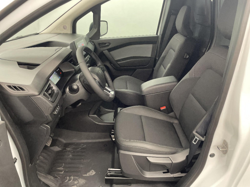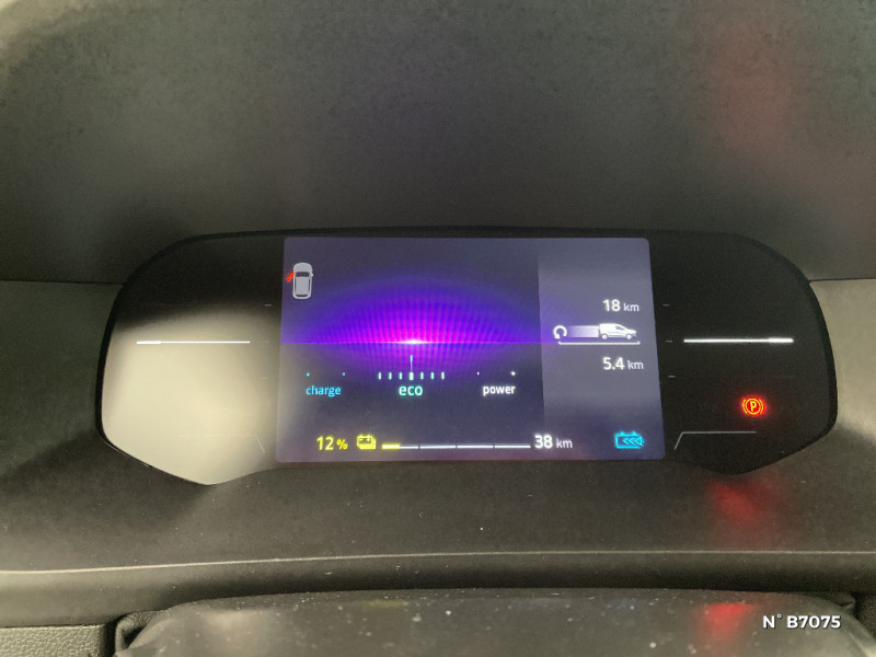 Volant textile enduit grainé / 4 points d'ancrage latéraux dans la zone de chargement / Aide au maintien dans la voie / Alerte sonore de survitesse ( reconnaissance panneau limitation vitesse) / Alerte vigilance conducteur / Boîte à gants tiroir Easy Life / Boîte de vitesses Automate à fonction continue / Câble de recharge(6m) mode 3 / Carte accès et démarrage mains libres avec fonction zoning / Chargeur 22kW/80kW / Cloison complète fixe / Console rangement central avec accoudoir / Contrôle de traction (TCS) / Contrôle dynamique de trajectoire (ESP) avec aide au démarrage en côte / Déconnexion de l'airbag passager / EASY LINK Ecran 8" avec Navigation / Eclairage LED dans la zone de chargement / Enjoliveur carten 16" / Feux de jour LED C-Shape intégrés aux projecteurs AV / Habillage latéral mi hauteur en isorel / Intérieur noir titan / Kit de gonflage / Lève-vitres AV électriques, impulsionnel à la descente et remontée côté conducteur / Miroir grand angle / Panneau latéral gauche tolé / Peinture opaque / Poignées de portes AV ton caisse / Portes AR 180° tôlées / Prédisposition ethylotest / Prise 12V en zone de chargement / Rack de rangement au-dessus des places AV (Capucine) / Rail PLC ton caisse / Rétroviseurs extérieurs électriques, dégivrants et rabattables / Siège passager rabattable et repliable formant plancher plat / Tableau de bord digital 7" / Tapis habitacle en caoutchouc