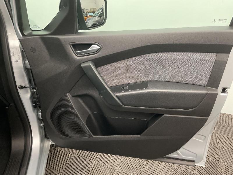 Roues tôlées 16" / Côtés de caisses vitrés fixes / Module central de rangement avec accoudoir textile entre les sièges AV / Habillage latéral plastique dans le coffre / Essuie lunette AR / Peinture opaque / Sans rangement supérieur aux places AR / Hayon AR vitré avec Essuis-lunette AR et Lunette AR chauffante / Ceinture de sécurité centrale AR 3 points, avec limiteur d'effort / Poignées de portes ton caisse / Climatisation AV à réglage manuel / Cache bagages / Sans Miroir de surveillance AR / Médaillons de portes AV plastique / Sans strippings / Siège passager AV individuel / Airbag frontal AV conducteur et passager latéral à retenue programmée / Kit de gonflage (sans roue de secours) / Capteurs AR / Enjoliveur KIJARO 16" / Sellerie tissu CHIKU / EASY LINK Ecran 8" : Système multimédia compatible Android Auto - Apple CarPlay - Bluetooth / Tableau de bord avec écran numérique 4,2'' / Port USB rang 2 + Prise 12V zone de chargement / Classe energetique C / Intérieur Gris Météore / Classe energetique 2