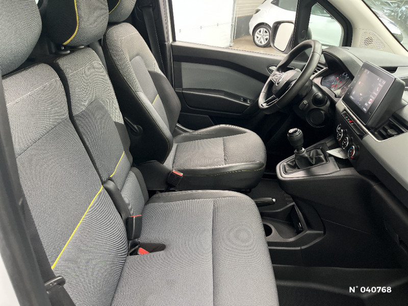 Siège passager rabattable et repliable formant plancher plat / Portes AR 180° tôlées / Boucliers AV/AR, rétroviseurs et baguettes latérales noir grainé / Peinture opaque / Poignées de portes ton caisse / Cloison complète tôlée / Feux de jour LED C-Shape intégrés aux projecteurs AV / Boîte à gants tiroir Easy Life / Panneau latéral gauche tolé / Eclairage LED dans la zone de chargement / Prise 12V en zone de chargement / Module central de rangement avec accoudoir textile entre les sièges avant / Intérieure noir carbone / Sellerie tissu Kilya / Tapis habitacle en caoutchouc / EASY LINK Ecran 8" avec Navigation / Gestion de la vitesse OSP+TSR / Tableau de bord avec écran numérique couleur 4''2 / Enjoliveur CARTEN 16" / Sans additif plancher / Sans volets pilotés à l'AV / Baguettes de protection latérales noir grainés / Cloison complète fixe / Roues tôlées 16"