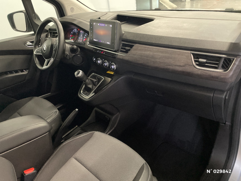 Côtés de caisses vitrés fixes / Module central de rangement avec accoudoir textile entre les sièges AV / Habillage latéral plastique dans le coffre / Tablettes "aviation" et poches aumônières au dos des sièges AV / Essuie lunette AR / Sans rangement supérieur aux places AR / Hayon AR vitré avec Essuis-lunette AR et Lunette AR chauffante / Ceinture de sécurité centrale AR 3 points, avec limiteur d'effort / Poignées de portes ton caisse / Roues tôlées 16" / Cache bagages / Diffusion d'air aux places AR / Médaillons de portes AV plastique / Sans strippings / Siège passager AV individuel / Airbag frontal AV conducteur et passager latéral à retenue programmée / Kit de gonflage (sans roue de secours) / Aide au parking AV/AR et latéral / Commutation automatique des feux de route/croisement / Boite à gant "Tiroir Easy Life" / Flexwheel LIMAN 16" / Sellerie tissu CHIKU / EASY LINK Ecran 8" : Système multimédia compatible Android Auto - Apple CarPlay - Bluetooth / Tableau de bord avec écran numérique 4,2'' / Port USB rang 2 + Prise 12V zone de chargement / Intérieur bois sombre brossé / Jantes VERESTE / Classe energetique 1 / Module central de rangement avec accoudoir entre les sièges AV