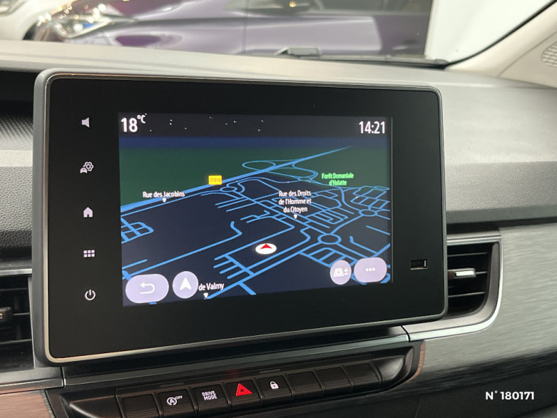 EASY LINK avec écran 8" Radio DAB, compatible Androïd AutoTM et Apple Carplay TM, contrôle vocal. / Habillage latéral plastique dans le coffre / Hayon AR vitré avec essuie-lunette AR et lunette AR chauffante / Kit de gonflage / Médaillons de portes AV plastique / Planche de bord gris météore / Poignées extérieures et cache-rail teinte carrosserie / Prédisposition éthylotest / Prise 12V dans le coffre et prise USB en 2ème rangée / Roues 16" avec enjoliveur KIJARO / Sans 2 sièges au 3ème rang / Sellerie tissu Inti / Siège passager standard / Tableau de bord digital 7" / Alerte sonore de survitesse (reconnaissance panneau limitation vitesse) / Alerte vigilance conducteur / Assistant maintien dans la voie / Banquette AR 2/3 1/3 en 2ème rangée / Boîte de vitesse automatique 7 rapports / Cache bagages / Ceinture de sécurité centrale AR 3 points, avec limiteur d'effort / Clé 3 boutons / Clignotants à LED / Console centrale avec accoudoir entre les sièges / Contrôle de la traction (TCS) / Coques de rétroviseurs noirs grand brillant / Côtés de caisse AR vitres fixes / Essuie lunette AR