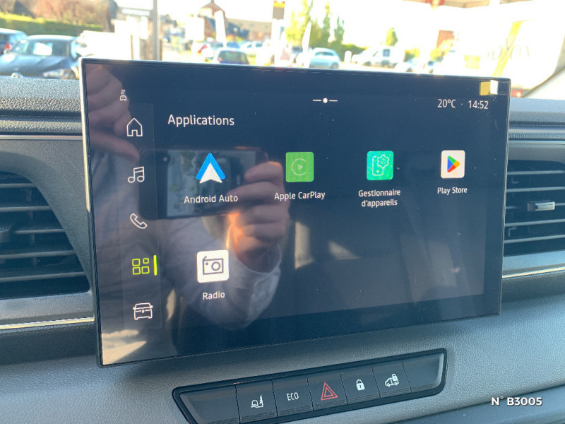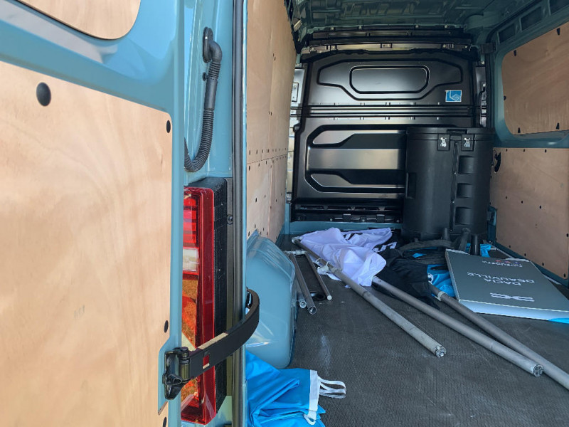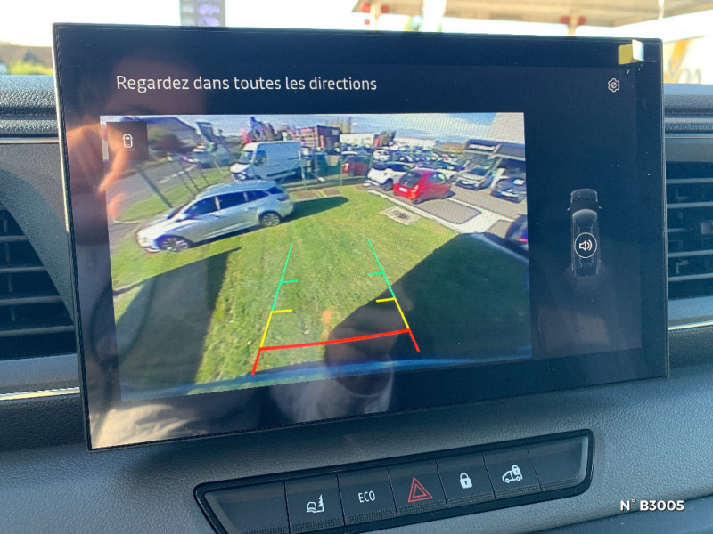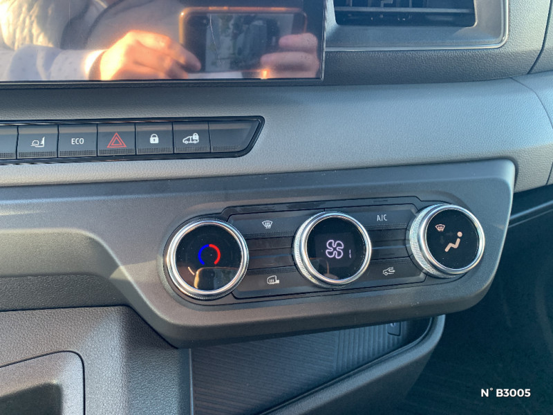 Antenne fouet / Rétroviseurs électriques et dégivrants, rabatable manuellement / Sellerie tissu chiné gris foncé + côté d'assise conducteur renforcé en textile enduit / Seuil de coffre / Siège conducteur réglable 6 directions avec réglage lombaire et accoudoir / Système multimédia openR link 10" (smartphone réplication sans fil Android Auto & Apple CarPlay) / 2 clés 3 boutons (1 repliable & 1 fixe) / 6 anneaux d'arrimage au sol, pivotants et encastrés (x4 au plancher & x2 cloison) / Eclairage habitacle halogène / Enjoliveurs chromé intérieur / Feux automatiques et essuis-vitres automatiques / Frein à main mécanique / Gestion de la vitesse (reconnaissance panneau limitation vitesse & prévention survitesse) / Grille de calandre noir grainé / Isolation cloison / Jantes tôlées 16'' avec enjoliveur "airna" / Kit de gonflage / Lève-vitres AV électriques (impulsionnel côté conducteur & passager) / Maintenance connectée, incluse pendant 8 ans / Mise à jour système (via firmware over the air FOTA), inclus pendant 5 ans / Pack contrôle à distance (via l¿application My Renault), inclus pendant 5 ans / Panneau latéral gauche tôlé / Panneaux latéraux AR tôlées / Planche de bord avec rangements ouverts / Portes AR tôlées ouvrant à 180° / Précâblage attelage / Prédisposition éthylotest / Prise 12V habitacle / Projecteurs AV LED hors feux de route / Eclairage de la zone de chargement halogène / Boîte à gants tiroir Easy Life / Boîte de vitesses Automate à fonction continue / Boitier connecté AIVC / Caméra ADAS / Ciel de toit noir / ABS evec EBV / Cloison complète tôlée / Combiné d'instrumentation avancé 7'' / Contrôle de traction (TCS) / Airbag frontal conducteur à retenue programmée / Alerte détection de fatigue / Alerte oubli de ceinture conducteur et passagers