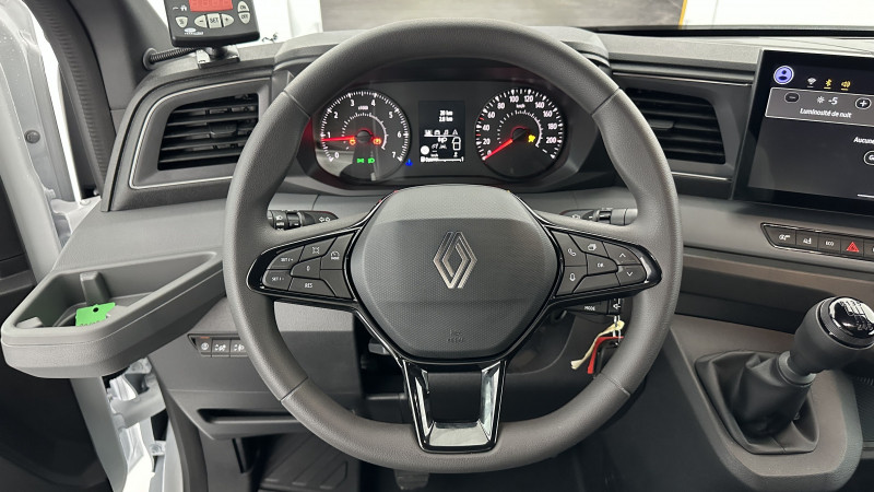 Cloison complète tôlée / Écran multimédia 10,1" avec réplication smartphone sans fil / Banquette passager AV 2 places avec dossier fixe / Jante standard 16" à grand enjoliveur / Éclairage intérieur LED à l?avant / Siège conducteur renforcé 3 réglages avec accoudoir / Pare-chocs avant mi-peint (noir laqué ou blanc) / Écran TFT noir et blanc 3,5" / Application Renault Trucks Red EDITION / Lève-vitres AV électriques (impulsionnel à la descente côté conducteur) / Panneau latéral gauche tôlé / Rétroviseurs électriques et dégivrants à double miroir / Sellerie tissu carbone foncé Kaleido / Feux de jour LED C-Shape intégrés aux projecteurs AV / Accoudoir escamotable sur siège conducteur /