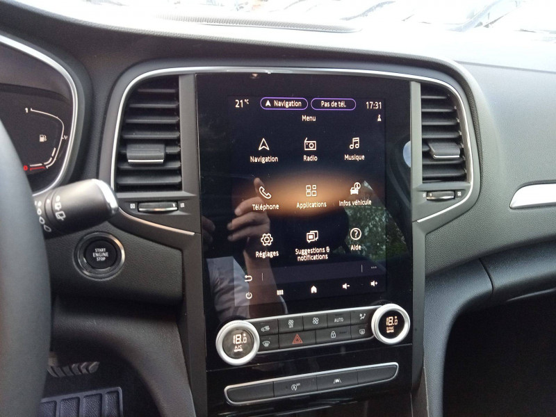 Commutation automatique des feux de route/croisement: / Feux de jour à guide de lumière LED et effet 3D: / Navigation répliquée dans le tableau de bord: / Alerte de distance de sécurité: / Alerte détection de fatigue: / Antenne Requin Noire: / Appel d'Urgence Renault: / Banquette AR rabattable 1/3 - 2/3 avec fonction Easy Break: / Carte Renault avec accès et démarrage mains libres avec fermeture à l'éloignement: / Compatibilité Apple CarPlay Wifi: / Console centrale de rangement avec accoudoir: / Evolution de gamme: coques de rétroviseurs noirs, limitation de vitesse 180 km/h: / Freinage actif d'urgence avec détection piétons: / Harmonie Carbone foncé: / Kit de gonflage et de réparation: / Lève-vitres AR anti-pincement: / Muret fermé: / Nouveau catalyseur: / Pare-soleil avec miroir de courtoisie éclairé: / Pré-équipement alarme: / Renault Multi-sense: / Rétroviseur intérieur électrochrome: / Siège conducteur réglable manuellement en hauteur et réglage lombaire manuel: / Système ISOFIX (i-Size) aux places AR (latérales): / Séquence d'accueil et de fermeture avec détection à l'approche: / Tableau de bord avec écran numérique et personnalisable 10": / Volant Soft-Touch: / Sellerie mixte textile enduit grainé/tissu noir: / / Véhicules équivalents: C4 - 308 - Golf