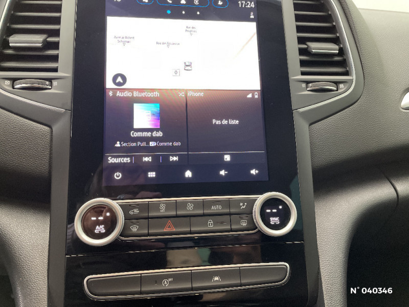 Kit de gonflage et de réparation / Rétroviseur intérieur électrochrome / Peinture opaque / Renault Multi-Sense (choix de modes de conduite) / Alerte Distance Sécurité / Harmonie Carbone foncé / Console centrale de rangement avec accoudoir / Pare-soleil avec miroir de courtoisie éclairé / Sièges AV réglables en hauteur et siège conducteur avec réglage lombaire / Feux de jour à guide de lumière LED et effet 3D / Freinage actif d'urgence avec détection piétons / Muret fermé / Nouveau catalyseur / Système multimédia EASY LINK 9,3" avec navigation / Classe energetique C / Compatibilité Apple CarPlay Wifi / Classe energetique 2 / Volant Soft-Touch / Mise à jour de l'alerte oubli de ceinture de sécurité / Carte Renault avec accès et démarrage mains libres avec fermeture à l'éloignement / Sellerie mixte similicuir/tissu noir / Séquence d'accueil à l'approche avec éclairage de signature lumineuse / Alerte détection de fatigue / Commutation automatique des feux de route/croisement / Déconnexion airbag passager AV / Tableau de bord avec écran numérique et personnalisable 7" / Appel d'Urgence Renault / Antenne requin