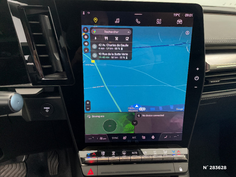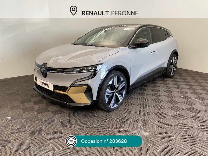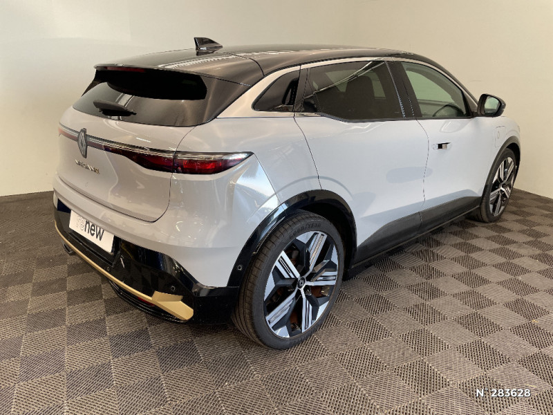 Antenne Requin / Rétroviseur jour/nuit automatique / Radars AV, AR et latéraux / Changement de mode de conduite via palettes au volant / Commutation automatique des feux et détecteur de pluie / Réplication smartphone / Commutation automatique des feux de route/croisement / Jantes alliage 20'' Noir brillant / Bouclier AV sport avec lame F1 / Eclairage d'accueil portes AV / Lame F1 Golf / Poignées de portes affleurantes / Projecteurs full LED directionnels avec fonction antibrouillard / Sellerie Cuir Riviera Gris noir titane / Signature lumineuse AV / Tapis couleur standard / Syst'me Multim'dia openR link 12" : navigation, services Google, audio premium Harman Kardon 9HP / Airbags latéraux, milieu AV et rideaux / Alerte de distance de sécurité / Alerte et assistant maintien de voie / Multi-sense / Alerte d'oubli de ceinture de sécurité / Bandeau full LED AR avec effet 3D "moiré" / Détection de fatigue / Freinage actif d'urgence urbain (piéton + cycliste + intersection) / Kit de gonflage / Sièges avec système ISOFIX / Câble de recharge pour Wallbox (mode 3 type 2, 5m) / Chargeur courant continu 130kW et courant alternatif 7kW (super) / Classe energetique A / Sellerie Cuir Riviera Noir Titane / Notice d'utilisation digitale embarqué dans le système multimédia du véhicule / Jantes alliage diamant'es 20" Enos / Câble pour borne de recharge (mode 3 type 2 monophasé, 5m) / Lame F1 Gold / Peinture bi-ton / Tableau de bord full numérique / 4 Ports USB (2 AV et 2 AR) / Carte Renault accès et démarrage mains libres / Console de rangement haute avec accoudoir / Purificateur d'air / Si'ge AV r'glables 'lectriquement et massant, 6 positions + lombaire / Volant chauffant / Ambiance interieure E4
