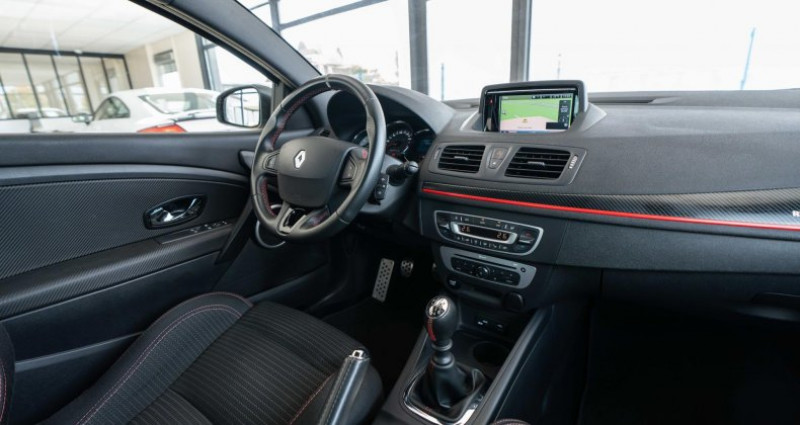 ======= OPTIONS ======= Caméra de recul Peinture métallisée R.S. Monitor 2.0 ======= EQUIPEMENTS DE SERIE ======= 3 appuie-tête arrière réglables en hauteur Étriers de frein avant Brembo 4 pistons ABS avec aide au freinage d'urgence Aide au démarrage en côte Aide au parking avant Aide au stationnement arrière Airbags anti-sous marinage dans assises conducteur et passager avant Airbags frontaux conducteur et passager adaptatifs (airbag passager déconnectable) Airbags latéraux (thorax bassin) avant Airbags rideaux de tête avant et arrière Allumage automatique des feux de détresse Appuie-tête à l'avant, réglables en hauteur Banquette arrière rabattable 1 3-2 3 Bas de marche Renault Sport Becquet arrière Renault Sport Carte Renault, accès et démarrage « mains-libres » Châssis Renault Sport Clignotant à impulsion Climatisation automatique bi-zone Condamnation automatique des ouvrants en roulant Console centrale avec accoudoir Contrôle dynamique de trajectoire (ESP) tri-modes :«Renault Sport Setting Management» Détecteur de pluie et allumage automatique des projecteurs Feux de jour à LED Harmonie Carbone très foncé Jantes alliage Tibor dark anthracite 18 Kit de réparation des pneus Lève vitres avant électriques à impulsion Lame F1 noir brillant Lave-phares Masque de projecteurs noirs Ordinateur de bord Pédalier et repose pied aluminium Renault Sport Pack R-Link Evolution Poignées de portes ton caisse Prise 12 volts à l'avant et à l'arrière Régulateur et limiteur de vitesse Rétroviseurs extérieurs électriques Rétroviseurs extérieurs noirs grand brillant Rétroviseurs extérieurs rabattables électriquement R-Plug&Radio+, CD MP3, Bluetooth, Plug&Music 3D Sound by Arkamys Rampes de feux LED Siège conducteur réglable en hauteur avec réglage lombaire Siège passager réglable en hauteur Sièges Sport tissu gris carbone avec surpiqûres rouges, sangles de ceintures rouges Système de fixation ISOFIX aux places latérales arrière Système de surveillance de la pression des pneumatiques Vitres latérales et lunette arrière surteintées Volant (avec point 0 rouge) et pommeau de levier de vitesses en cuir Renault Sport Volant réglable en hauteur et en profondeur Nb. Vitesses : 6 Conso Mixte : l/100