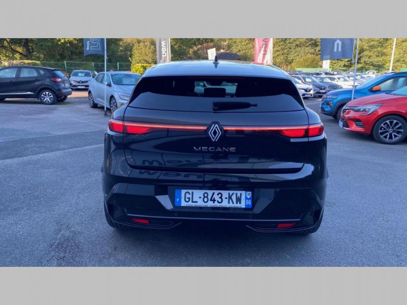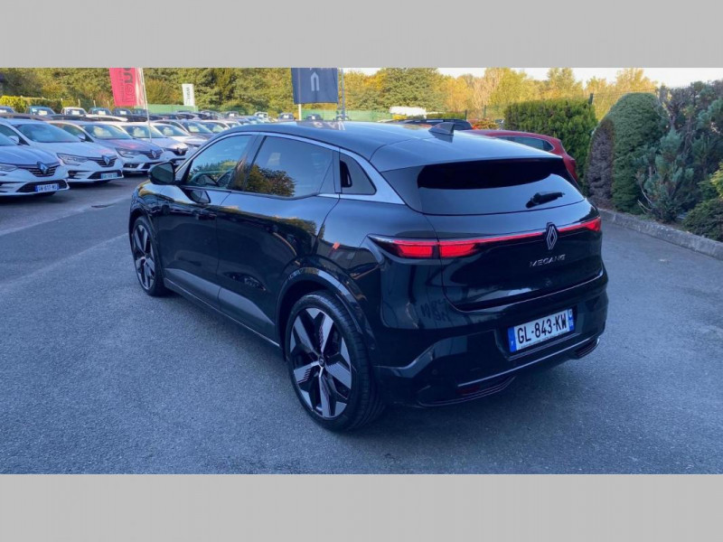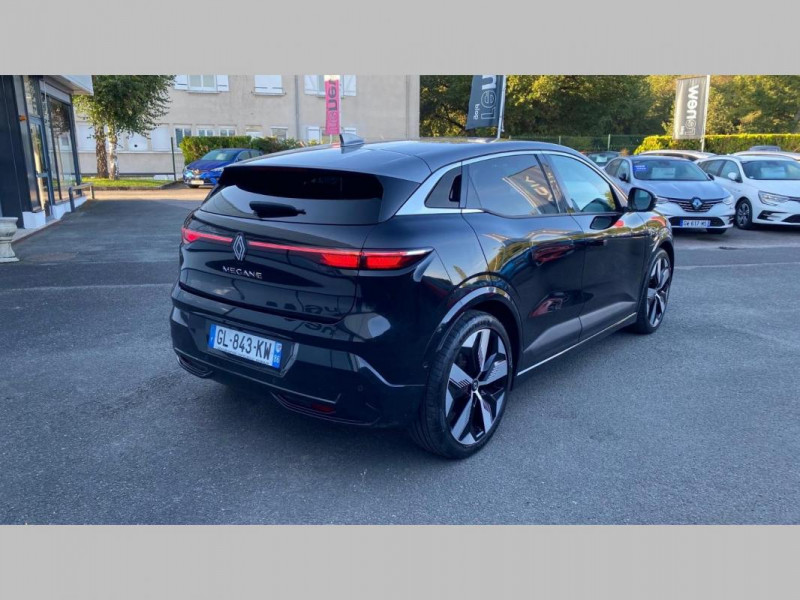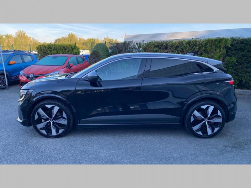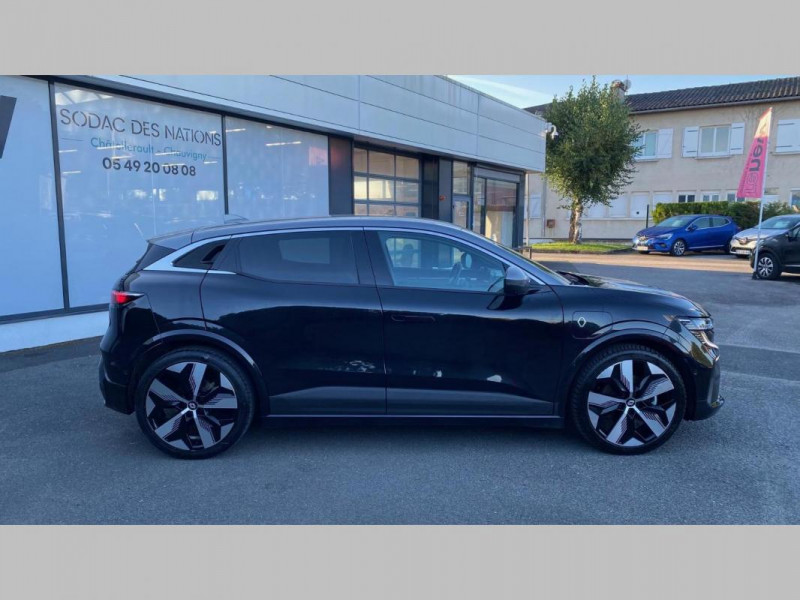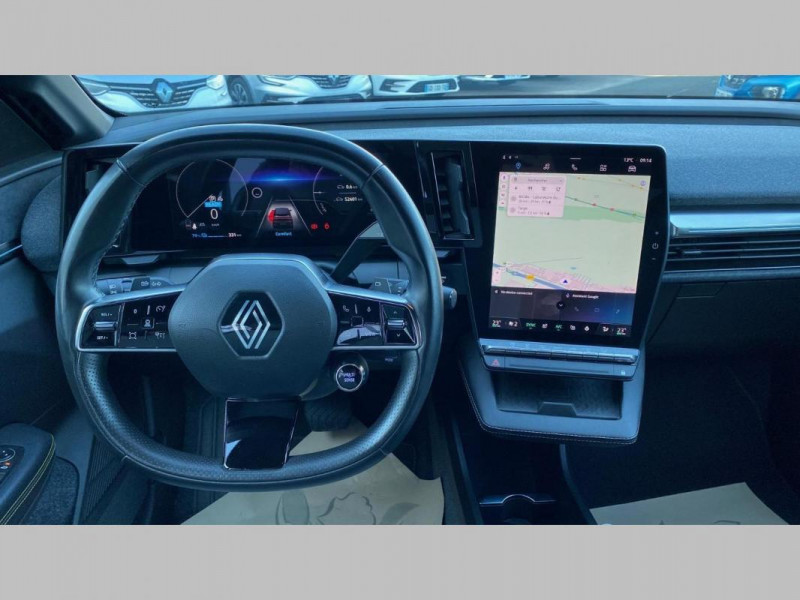 Peinture opaque / Réplication smartphone / Commutation automatique des feux de route/croisement / Rétroviseur jour/nuit automatique / Changement de mode de conduite via palettes au volant / Commutation automatique des feux et détecteur de pluie / Multi-sense / Peinture mono-ton / Bouclier AV Sport avec lame F1 ton caisse / Tableau de bord full numérique / Carte Renault accès et démarrage mains libres / Console de rangement haute avec accoudoir / Purificateur d'air / Siège AV réglables 6 positions conducteur + lombaire / Volant chauffant / Ambiance interieure E3 / Antenne Requin / Bouclier AV sport avec lame F1 / Poignées de portes affleurantes / Projecteurs full LED directionnels avec fonction antibrouillard / Sellerie mixte simili cuir / textile recyclé ELZA REC gris chiné / Signature lumineuse AV / Vitres et lunette AR surteintées / Système Multimédia openR link 12 : navigation / services Google / audio Arkamys Auditorium 6 HP / milieu AV et rideaux / Alerte de distance de sécurité / Alerte et assistant maintien de voie / Alerte d'oubli de ceinture de sécurité / Bandeau full LED AR avec effet 3D moiré / Détection de fatigue / Kit de gonflage / Sièges avec système ISOFIX / Chargeur courant continu 130kW et courant alternatif 7kW / Notice d?utilisation digitale embarqué dans le système multimédia du véhicule / Jantes alliage diamantées 20 Soren / Câble pour borne de recharge / rabattables électriquement avec mémoire / Classe energetique 0 / Alerte et prévention sortie de voie