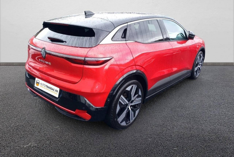 Bandeau full LED AR avec effet 3D "moiré" / Bandeau full LED AR avec effet 3D "moiré" / Commutation automatique des feux de route/croisement / Commutation automatique des feux de route/croisement / Commutation automatique des feux et détecteur de pluie / Commutation automatique des feux et détecteur de pluie / Jantes alliage diamantées 20" Enos / Jantes alliage diamantées 20" Enos / Projecteurs full LED directionnels avec fonction antibrouillard / Projecteurs full LED directionnels avec fonction antibrouillard / Rétroviseur jour/nuit automatique / Rétroviseur jour/nuit automatique / Système Multimédia openR link 12" : navigation, services Google, audio premium Harman Kardon 9HP / Système Multimédia openR link 12" : navigation, services Google, audio premium Harman Kardon 9HP / 4 Ports USB (2 AV et 2 AR) / 4 Ports USB (2 AV et 2 AR) / Airbags latéraux, milieu AV et rideaux / Airbags latéraux, milieu AV et rideaux / Alerte d'oubli de ceinture de sécurité / Alerte d'oubli de ceinture de sécurité / Alerte de distance de sécurité / Alerte de distance de sécurité / Alerte et assistant maintien de voie / Alerte et assistant maintien de voie / Ambiance interieure E4 / Ambiance interieure E4 / Antenne Requin / Antenne Requin / Bouclier AV sport avec lame F1 / Bouclier AV sport avec lame F1 / Carte Renault accès et démarrage mains libres / Carte Renault accès et démarrage mains libres / Changement de mode de conduite via palettes au volant / Changement de mode de conduite via palettes au volant / Chargeur courant continu 130kW et courant alternatif 7kW (super) / Chargeur courant continu 130kW et courant alternatif 7kW (super) / Console de rangement haute avec accoudoir / Console de rangement haute avec accoudoir / Câble pour borne de recharge (mode 3 type 2 monophasé, 5m) / Câble pour borne de recharge (mode 3 type 2 monophasé, 5m) / Détection de fatigue / Détection de fatigue / Freinage actif d'urgence urbain (piéton + cycliste + intersection) / Freinage actif d'urgence urbain (piéton + cycliste + intersection) / Kit de gonflage / Kit de gonflage / Lame F1 Gold / Lame F1 Gold / Multi-sense / Multi-sense / Notice d'utilisation digitale embarqué dans le système multimédia du véhicule / Notice d'utilisation digitale embarqué dans le système multimédia du véhicule / Poignées de portes affleurantes / Poignées de portes affleurantes / Purificateur d'air / Purificateur d'air / Radars AV, AR et latéraux / Radars AV, AR et latéraux / Réplication smartphone / Réplication smartphone / Signature lumineuse AV / Signature lumineuse AV / Siège AV réglables électriquement et massant, 6 positions + lombaire / Siège AV réglables électriquement et massant, 6 positions + lombaire / Sièges avec système ISOFIX / Sièges avec système ISOFIX / Tableau de bord full numérique / Tableau de bord full numérique / Volant chauffant / Volant chauffant