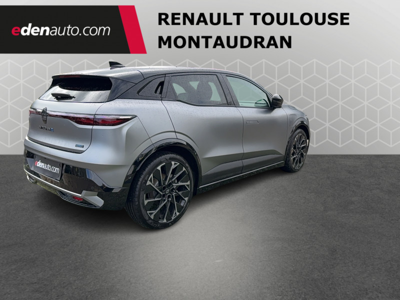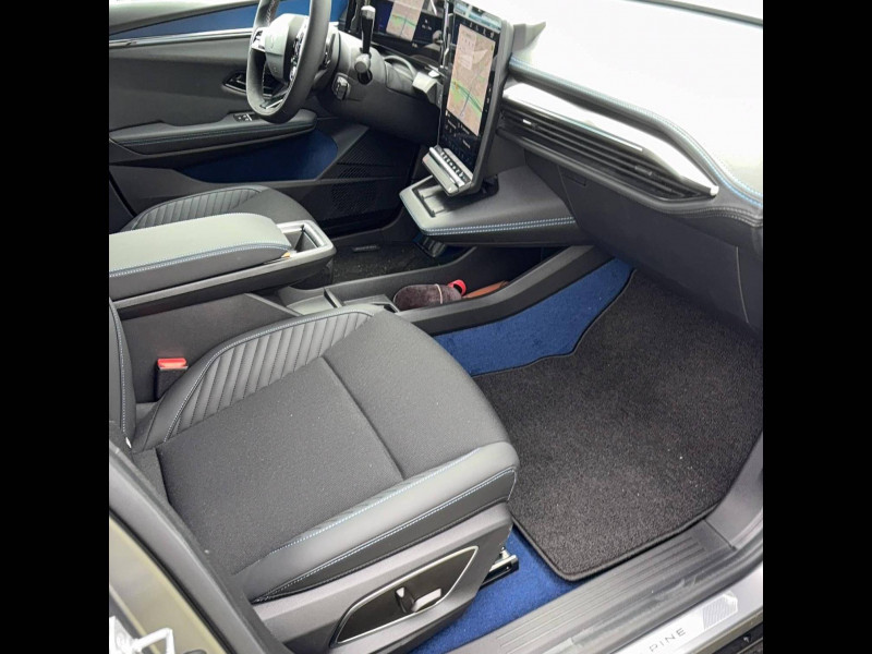 4 Ports USB (2 AV et 2 AR) / Adaptation intelligente de la vitesse / Airbags latéraux, milieu AV et rideaux / Alerte de distance de sécurité / Alerte détection de fatigue / Alerte d'oubli de ceinture de sécurité / Alerte et prévention sortie de voie (dont urgence) / Antenne Requin / Avertisseur d'angle mort et prévention sortie de voie en cas de dépassement / Bandeau full LED AR avec effet 3D "moiré" / Boîte de vitesse automatisée à variation continue / Bouclier AV sport avec lame F1 / Câble pour borne de recharge (mode 3 type 2 triphasé, 5m) / Caméra de recul digitale haute définition / Carte Renault accès et démarrage mains libres / Changement d'intensité du freinage régénératif par palettes / Chargeur AC 11 kW triphasé (compatible V2G/V2L) / Commutation automatique des feux de route/croisement / Console de rangement haute avec accoudoir central coulissant / Détection de la pression des pneumatiques / Direction assistée avec assistance variable / Finition extérieure esprit Alpine / Freinage automatique d'urgence en ville pour deux roues et piétons / Gestion automatique des feux diurnes et des essuie-glaces / Jantes alliage diamantées en noir verni fumé 20" speedway / Kit de réparation pour pneumatiques / Lame f1 gris schiste satin / Maintenance connectée, incluse pendant 8 ans / Mise à jour système (via firmware over the air FOTA), inclus pendant 5 ans / Moquette couleur bleu esprit Alpine / Multi-sense / Notice d'utilisation digitale embarqué dans le système multimédia du véhicule / Pack connected driving, inclus pendant 5 ans / Pack contrôle à distance (via l'application My Renault), inclus pendant 5 ans / Planche de bord en tissu recyclé gris chiné / Poignées de portes affleurantes / Pompe à chaleur / Projecteurs full LED directionnels avec fonction antibrouillard / Radars AV, AR et latéraux / Réplication smartphone / Rétroviseur jour/nuit automatique / Sellerie maille embossée recyclée / textile refined matelassé noir titane et surpiqûres bleu Alpine / Sièges avec système ISOFIX / Sièges AV électriques avec réglage lombaire + siège conducteur massant / Sièges typés sport, volant Alpine, planche de bord spécifique, pièces décor bleues / Signature lumineuse AV / Système d'optimisation de la température batterie (charge rapide DC) / Système Multimédia openR link 12" : Google intégré, préconditionnement batterie pour charge DC, audio Arkamys Auditorium / Tableau de bord full numérique / Volant chauffant / Volant en textile refined biosourcé