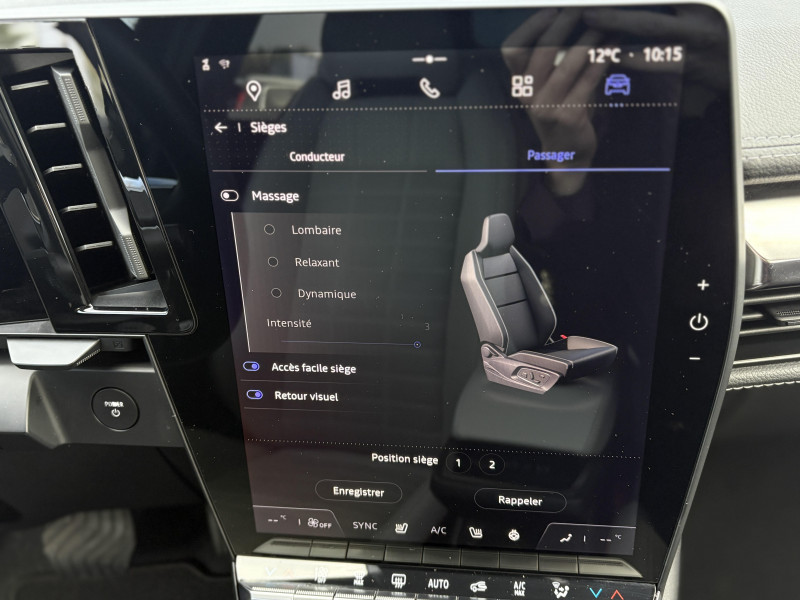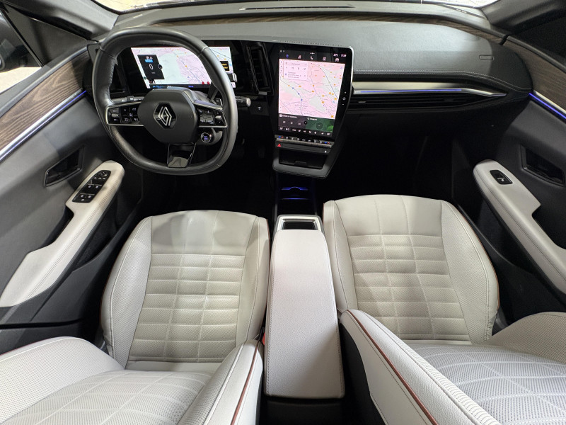 Bandeau full LED AR avec effet 3D "moiré" / Commutation automatique des feux de route/croisement / Gestion automatique des feux diurnes et des essuie-glaces / Jantes alliage diamantées 20" Enos / Projecteurs full LED directionnels avec fonction antibrouillard / Rétroviseur jour/nuit automatique / Système Multimédia openR link 12" : navigation, services Google, audio premium Harman Kardon 9HP / 4 Ports USB (2 AV et 2 AR) / Airbags latéraux, milieu AV et rideaux / Alerte d'oubli de ceinture de sécurité / Alerte de distance de sécurité / Alerte et prévention sortie de voie (dont urgence) / Ambiance interieure E4 / Antenne Requin / Bouclier AV sport avec lame F1 / Carte Renault accès et démarrage mains libres / Changement d'intensité du freinage régénératif par palettes / Chargeur courant alternatif 7kW & courant continu 85 (standard) / 130 kW (super charge) (pic max) / Console de rangement haute avec accoudoir / Câble pour borne de recharge (mode 3 type 2 monophasé, 5m) / Détection de fatigue / Freinage actif d'urgence urbain (piéton + cycliste + intersection) / Kit de gonflage / Lame F1 Gold / Multi-sense / Poignées de portes affleurantes / Pompe à chaleur / Radars AV, AR et latéraux / Réplication smartphone / Signature lumineuse AV / Siège AV réglables électriquement et massant, 6 positions + lombaire / Sièges avec système ISOFIX / Système d'optimisation de la température batterie (charge rapide DC) / Tableau de bord full numérique / Volant chauffant