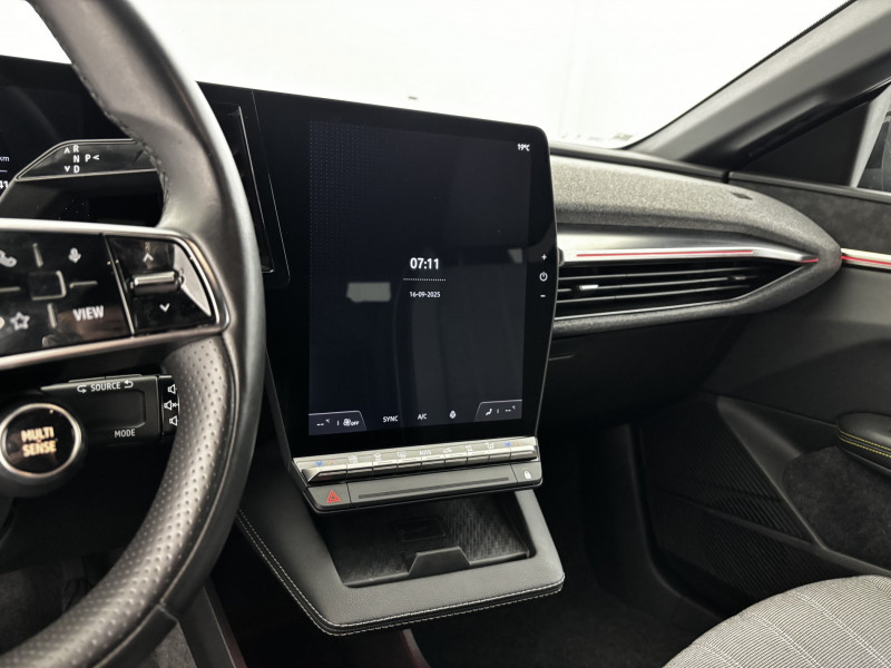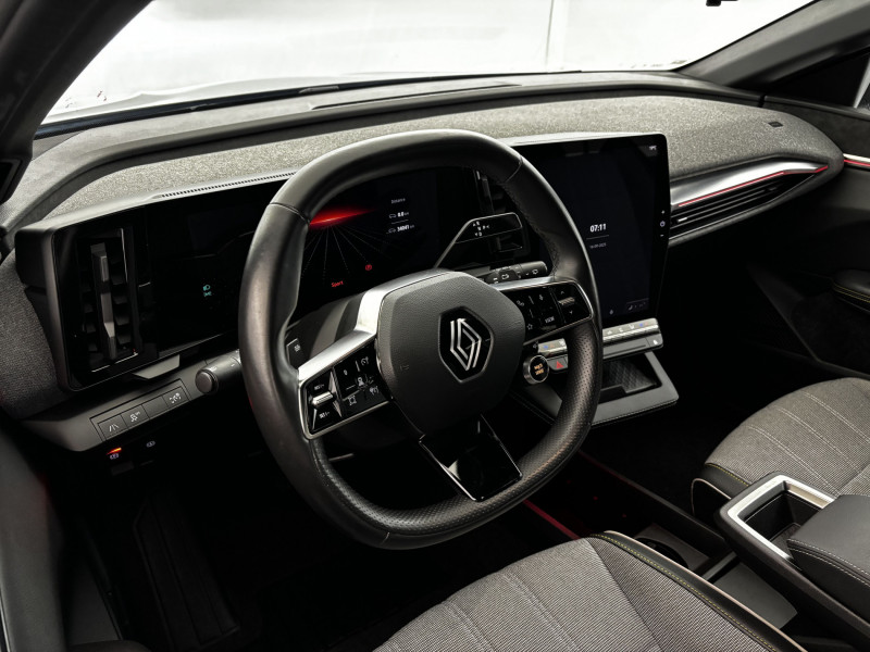 Alerte de distance de sécurité / 4 Ports USB (2 AV et 2 AR) / Airbags latéraux, milieu AV et rideaux / Alerte d'oubli de ceinture de sécurité / Alerte et prévention sortie de voie (dont urgence) / Ambiance interieure E3 / Antenne Requin / Bandeau full LED AR avec effet 3D "moiré" / Peinture mono-ton / Bouclier AV sport avec lame F1 / Bouclier AV Sport avec lame F1 ton caisse / Câble pour borne de recharge (mode 3 type 2 monophasé, 5m) / Carte Renault accès et démarrage mains libres / Changement d'intensité du freinage régénératif par palettes / Chargeur courant alternatif 7kW & courant continu 85 (standard) / 130 kW (super charge) (pic max) / Commutation automatique des feux de route/croisement / Console de rangement haute avec accoudoir / Détection de fatigue / Freinage actif d'urgence urbain (piéton + cycliste + intersection) / Gestion automatique des feux diurnes et des essuie-glaces / Jantes alliage diamantées 20" Soren / Kit de gonflage / Multi-sense / Poignées de portes affleurantes / Pompe à chaleur / Projecteurs full LED directionnels avec fonction antibrouillard / Sellerie tissu recyclé gris chiné/textile enduit grainé recyclé noir titane/surpiqûres jaunes / Réplication smartphone / Rétroviseur jour/nuit automatique / Sièges avec système ISOFIX / Signature lumineuse AV / Système d'optimisation de la température batterie (charge rapide DC) / Système Multimédia openR link 12" : navigation, services Google, audio Arkamys Auditorium 6 HP / Tableau de bord full numérique / Tissus velours / Volant chauffant / / Véhicules équivalents: C4 - 308 - Golf