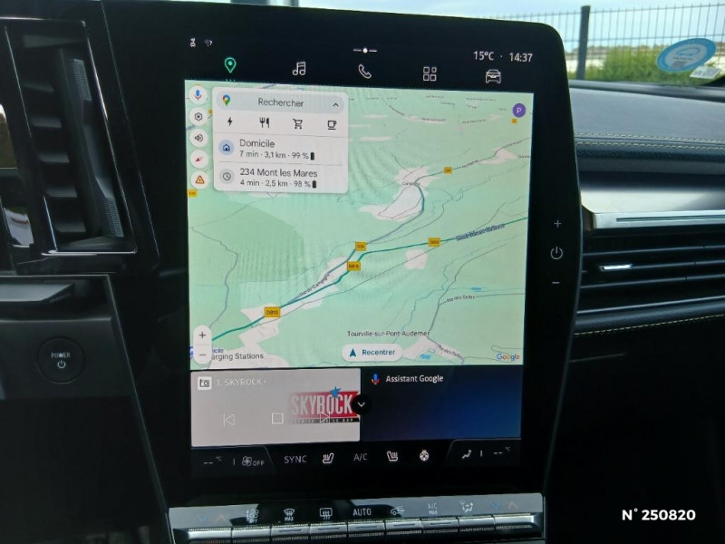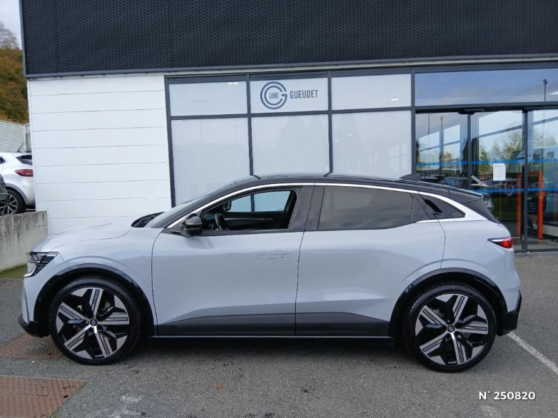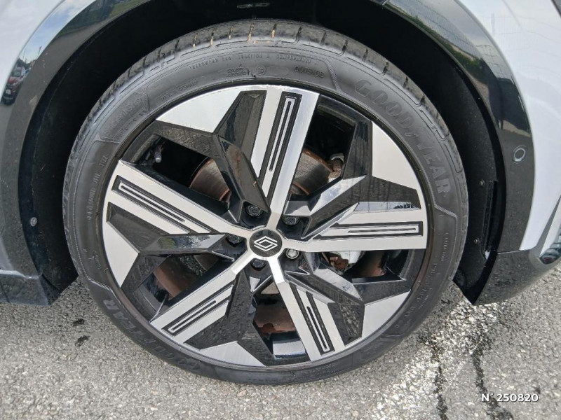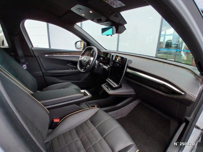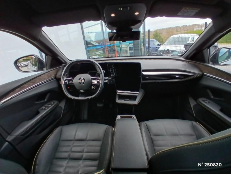Sièges avec système ISOFIX / Radars AV, AR et latéraux / Changement de mode de conduite via palettes au volant / Commutation automatique des feux et détecteur de pluie / Multi-sense / Tableau de bord full numérique / 4 Ports USB (2 AV et 2 AR) / Chargeur courant continu 130kW et courant alternatif 7kW (super) / Sellerie Cuir Riviera Noir Titane / Notice d'utilisation digitale embarqué dans le système multimédia du véhicule / Jantes alliage diamant'es 20" Enos / Câble pour borne de recharge (mode 3 type 2 monophasé, 5m) / Lame F1 Gold / Classe energetique 0 / Alerte et prévention sortie de voie (dont urgence) / Signature lumineuse AV / Carte Renault accès et démarrage mains libres / Console de rangement haute avec accoudoir / Purificateur d'air / Si'ge AV r'glables 'lectriquement et massant, 6 positions + lombaire / Volant chauffant / Ambiance interieure E4 / Antenne Requin / Bouclier AV sport avec lame F1 / Poignées de portes affleurantes / Projecteurs full LED directionnels avec fonction antibrouillard / Peinture opaque / Réplication smartphone / Commutation automatique des feux de route/croisement / Rétroviseur jour/nuit automatique / Syst'me Multim'dia openR link 12" : navigation, services Google, audio premium Harman Kardon 9HP / Airbags latéraux, milieu AV et rideaux / Alerte de distance de sécurité / Alerte et assistant maintien de voie / Alerte d'oubli de ceinture de sécurité / Bandeau full LED AR avec effet 3D "moiré" / Détection de fatigue / Freinage actif d'urgence urbain (piéton + cycliste + intersection) / Kit de gonflage