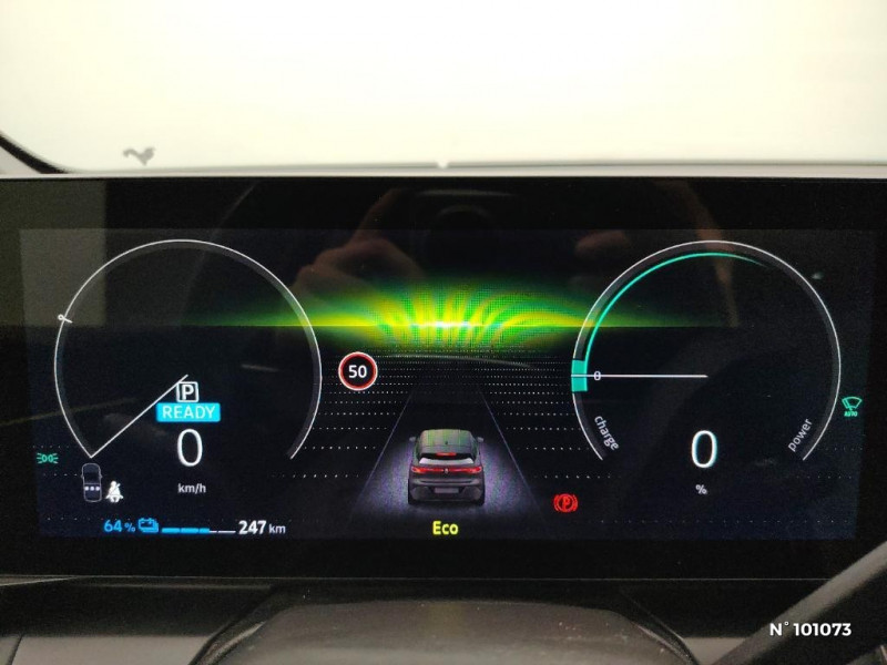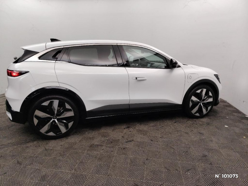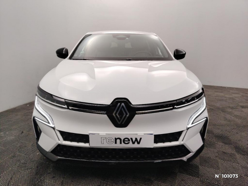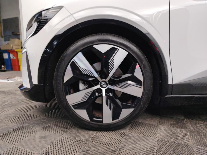 Détection de fatigue / Freinage actif d'urgence urbain (piéton + cycliste + intersection) / Kit de gonflage / Sièges avec système ISOFIX / Signature lumineuse AV / Antenne Requin / Bouclier AV sport avec lame F1 / Poignées de portes affleurantes / Projecteurs full LED directionnels avec fonction antibrouillard / Sellerie mixte simili cuir / textile recyclé ELZA REC gris chiné / Gestion automatique des feux diurnes et des essuie-glaces / Changement d'intensité du freinage régénératif par palettes / Chargeur courant alternatif 7kW & courant continu 85 (standard) / 130 kW (super charge) (pic max) / Chargeur courant continu 130kW et courant alternatif 7kW (super) / Pompe à chaleur / Notice d'utilisation digitale embarqué dans le système multimédia du véhicule / Jantes alliage diamantées 20" Soren / Câble pour borne de recharge (mode 3 type 2 monophasé, 5m) / Classe energetique 0 / Alerte et prévention sortie de voie (dont urgence) / Système d'optimisation de la température batterie (charge rapide DC) / Peinture opaque / Réplication smartphone / Commutation automatique des feux de route/croisement / Rétroviseur jour/nuit automatique / Changement de mode de conduite via palettes au volant / Commutation automatique des feux et détecteur de pluie / Multi-sense / Peinture mono-ton / Bouclier AV Sport avec lame F1 ton caisse / Tableau de bord full numérique / 4 Ports USB (2 AV et 2 AR) / Carte Renault accès et démarrage mains libres / Console de rangement haute avec accoudoir / Purificateur d'air / Siège AV réglables 6 positions conducteur + lombaire / Volant chauffant / Ambiance interieure E3 / Système Multimédia openR link 12" : navigation, services Google, audio Arkamys Auditorium 6 HP / Airbags latéraux, milieu AV et rideaux / Alerte de distance de sécurité / Alerte et assistant maintien de voie / Alerte d'oubli de ceinture de sécurité / Bandeau full LED AR avec effet 3D "moiré"
