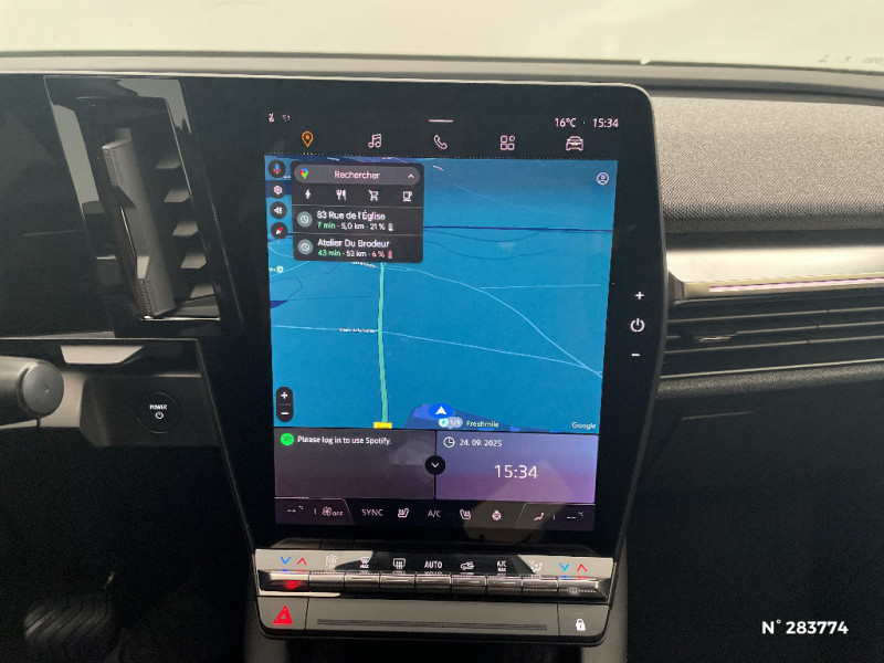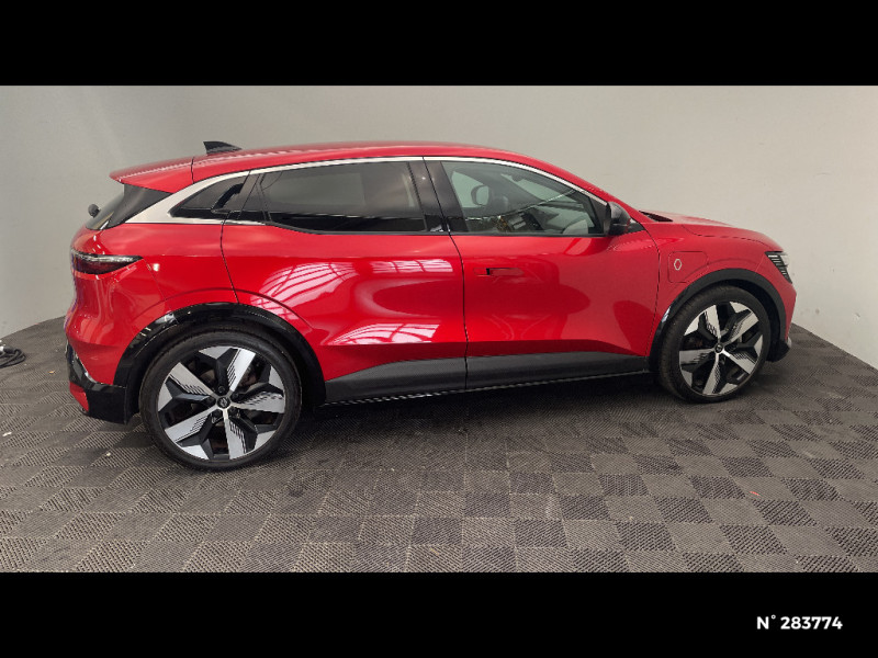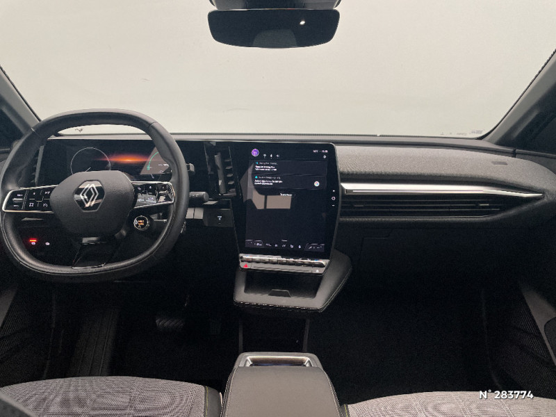 Classe energetique A / Notice d'utilisation digitale embarqué dans le système multimédia du véhicule / Câble pour borne de recharge (mode 3 type 2 triphasé, 5m) / Console de rangement haute avec accoudoir / Purificateur d'air / Siège AV réglables 6 positions conducteur + lombaire / Volant chauffant / Ambiance interieure E3 / Antenne Requin / Bouclier AV sport avec lame F1 / Réplication smartphone / Commutation automatique des feux de route/croisement / Rétroviseur jour/nuit automatique / Changement de mode de conduite via palettes au volant / Commutation automatique des feux et détecteur de pluie / Multi-sense / Peinture mono-ton / Bouclier AV Sport avec lame F1 ton caisse / Tableau de bord full numérique / 4 Ports USB (2 AV et 2 AR) / Carte Renault accès et démarrage mains libres / Eclairage d'accueil portes AV / Jantes alliage diamantées 20" Soren / Poignées de portes affleurantes / Projecteurs full LED directionnels avec fonction antibrouillard / Sellerie mixte simili cuir / textile recyclé ELZA REC gris chiné / Signature lumineuse AV / Tapis couleur standard / Système Multimédia openR link 12" : navigation, services Google, audio Arkamys Auditorium 6 HP / Airbags latéraux, milieu AV et rideaux / Alerte de distance de sécurité / Alerte et assistant maintien de voie / Alerte d'oubli de ceinture de sécurité / Bandeau full LED AR avec effet 3D "moiré" / Détection de fatigue / Freinage actif d'urgence urbain (piéton + cycliste + intersection) / Kit de gonflage / Sièges avec système ISOFIX / Câble de recharge pour Wallbox (mode 3 type 2, 5m) / Chargeur courant continu 130kW et courant alternatif 22kW (optimal)