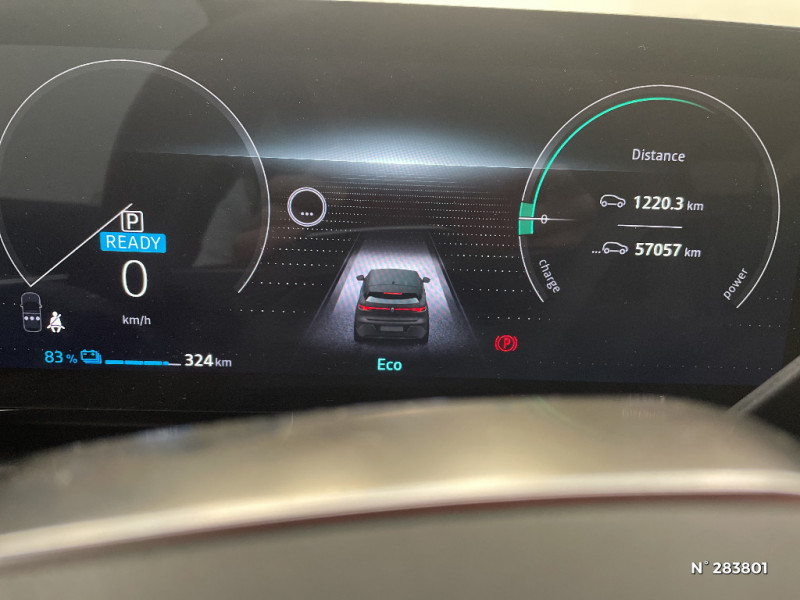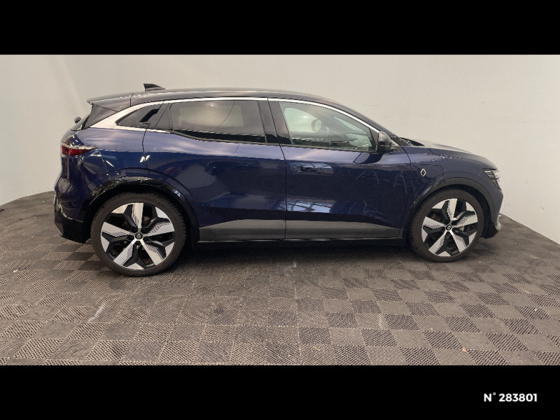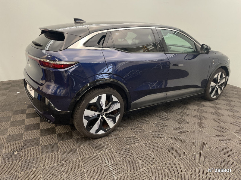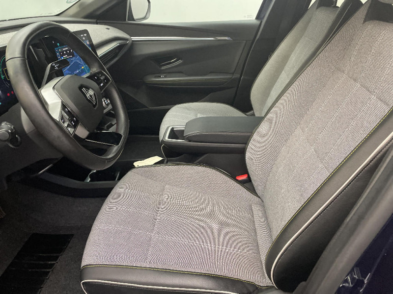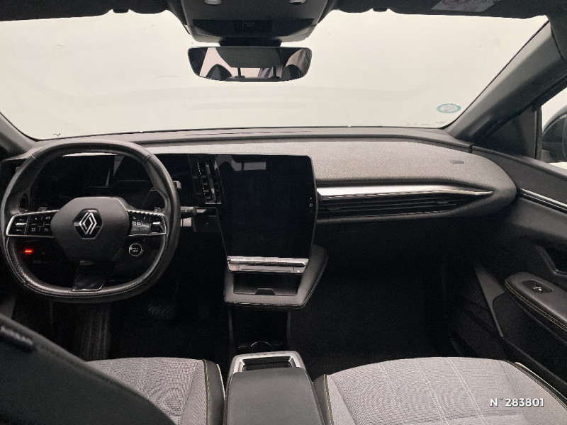 Poignées de portes affleurantes / Projecteurs full LED directionnels avec fonction antibrouillard / Sellerie mixte simili cuir / textile recyclé ELZA REC gris chiné / Signature lumineuse AV / Système Multimédia openR link 12" : navigation, services Google, audio Arkamys Auditorium 6 HP / Peinture opaque / Réplication smartphone / Commutation automatique des feux de route/croisement / Rétroviseur jour/nuit automatique / Changement de mode de conduite via palettes au volant / Commutation automatique des feux et détecteur de pluie / Multi-sense / Peinture mono-ton / Bouclier AV Sport avec lame F1 ton caisse / Tableau de bord full numérique / 4 Ports USB (2 AV et 2 AR) / Carte Renault accès et démarrage mains libres / Console de rangement haute avec accoudoir / Purificateur d'air / Siège AV réglables 6 positions conducteur + lombaire / Volant chauffant / Airbags latéraux, milieu AV et rideaux / Alerte de distance de sécurité / Alerte et assistant maintien de voie / Alerte d'oubli de ceinture de sécurité / Bandeau full LED AR avec effet 3D "moiré" / Détection de fatigue / Freinage actif d'urgence urbain (piéton + cycliste + intersection) / Kit de gonflage / Sièges avec système ISOFIX / Chargeur courant continu 130kW et courant alternatif 7kW (super) / Pompe à chaleur / Notice d'utilisation digitale embarqué dans le système multimédia du véhicule / Jantes alliage diamantées 20" Soren / Câble pour borne de recharge (mode 3 type 2 monophasé, 5m) / Classe energetique 0 / Alerte et prévention sortie de voie (dont urgence) / Système d'optimisation de la température batterie (charge rapide DC) / Gestion automatique des feux diurnes et des essuie-glaces / Changement d'intensité du freinage régénératif par palettes / Chargeur courant alternatif 7kW & courant continu 85 (standard) / 130 kW (super charge) (pic max) / Ambiance interieure E3 / Antenne Requin / Bouclier AV sport avec lame F1