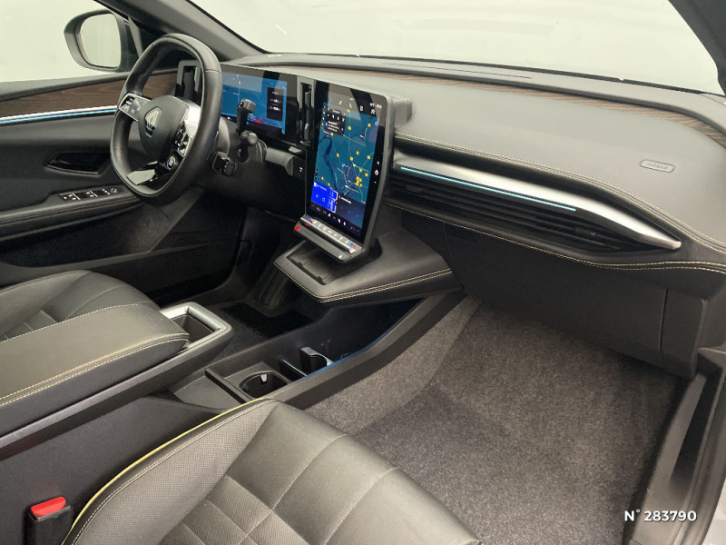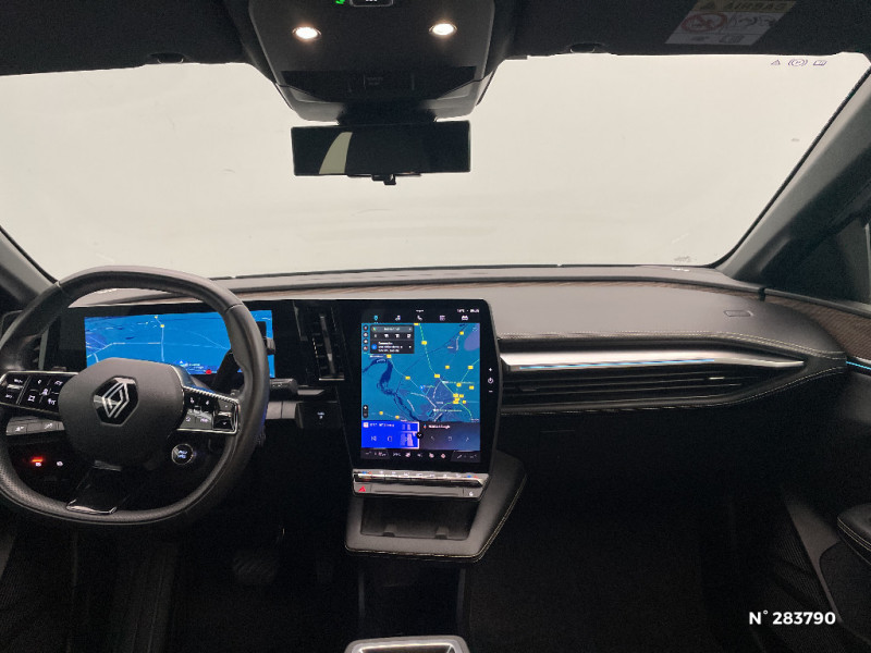 Réplication smartphone / Commutation automatique des feux de route/croisement / Chargeur courant alternatif 7kW & courant continu 85 (standard) / 130 kW (super charge) (pic max) / Projecteurs full LED directionnels avec fonction antibrouillard / Signature lumineuse AV / Syst'me Multim'dia openR link 12" : navigation, services Google, audio premium Harman Kardon 9HP / Airbags latéraux, milieu AV et rideaux / Alerte de distance de sécurité / Alerte d'oubli de ceinture de sécurité / Bandeau full LED AR avec effet 3D "moiré" / Détection de fatigue / Freinage actif d'urgence urbain (piéton + cycliste + intersection) / Kit de gonflage / Sièges avec système ISOFIX / Chargeur courant continu 130kW et courant alternatif 7kW (super) / Bouclier AV sport avec lame F1 / Poignées de portes affleurantes / Rétroviseur jour/nuit automatique / Radars AV, AR et latéraux / Changement de mode de conduite via palettes au volant / Commutation automatique des feux et détecteur de pluie / Multi-sense / Peinture bi-ton / Tableau de bord full numérique / 4 Ports USB (2 AV et 2 AR) / Carte Renault accès et démarrage mains libres / Console de rangement haute avec accoudoir / Si'ge AV r'glables 'lectriquement et massant, 6 positions + lombaire / Volant chauffant / Ambiance interieure E4 / Antenne Requin / Sellerie Cuir Riviera Noir Titane / Pompe à chaleur / Notice d'utilisation digitale embarqué dans le système multimédia du véhicule / Jantes alliage diamant'es 20" Enos / Câble pour borne de recharge (mode 3 type 2 monophasé, 5m) / Lame F1 Gold / Classe energetique 0 / Alerte et prévention sortie de voie (dont urgence) / Système d'optimisation de la température batterie (charge rapide DC) / Gestion automatique des feux diurnes et des essuie-glaces / Changement d'intensité du freinage régénératif par palettes