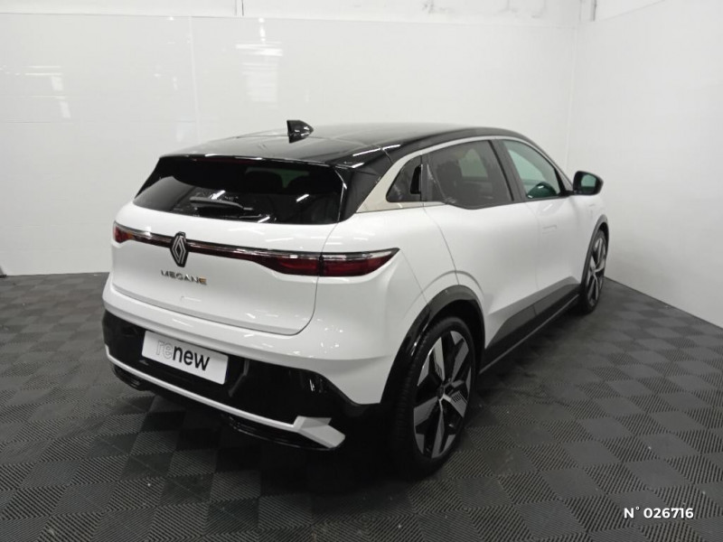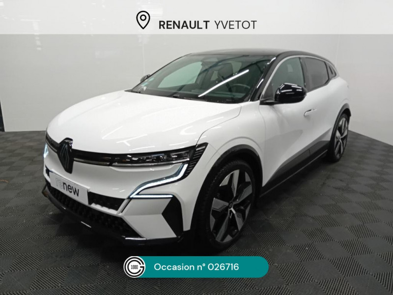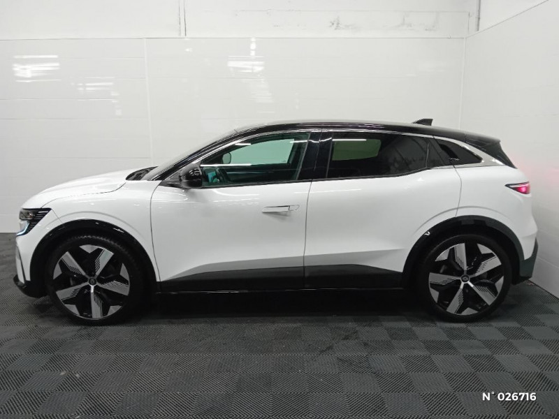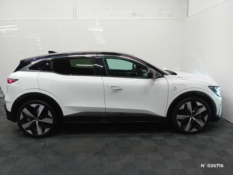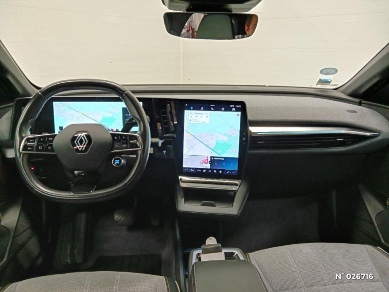 Jantes alliage diamantées 20" Soren / Poignées de portes affleurantes / Projecteurs full LED directionnels avec fonction antibrouillard / Sellerie mixte simili cuir / textile recyclé ELZA REC gris chiné / Signature lumineuse AV / Tapis couleur standard / Système Multimédia openR link 12" : navigation, services Google, audio Arkamys Auditorium 6 HP / Airbags latéraux, milieu AV et rideaux / Alerte de distance de sécurité / Alerte et assistant maintien de voie / Changement de mode de conduite via palettes au volant / Commutation automatique des feux et détecteur de pluie / Multi-sense / Peinture mono-ton / Bouclier AV Sport avec lame F1 ton caisse / Réplication smartphone / Commutation automatique des feux de route/croisement / Rétroviseur jour/nuit automatique / Purificateur d'air / Siège AV réglables 6 positions conducteur + lombaire / Alerte d'oubli de ceinture de sécurité / Bandeau full LED AR avec effet 3D "moiré" / Détection de fatigue / Freinage actif d'urgence urbain (piéton + cycliste + intersection) / Kit de gonflage / Sièges avec système ISOFIX / Câble de recharge pour Wallbox (mode 3 type 2, 5m) / Chargeur courant continu 130kW et courant alternatif 7kW (super) / Classe energetique A / Notice d'utilisation digitale embarqué dans le système multimédia du véhicule / Câble pour borne de recharge (mode 3 type 2 monophasé, 5m) / Tableau de bord full numérique / 4 Ports USB (2 AV et 2 AR) / Carte Renault accès et démarrage mains libres / Console de rangement haute avec accoudoir / Volant chauffant / Ambiance interieure E3 / Antenne Requin / Bouclier AV sport avec lame F1 / Eclairage d'accueil portes AV