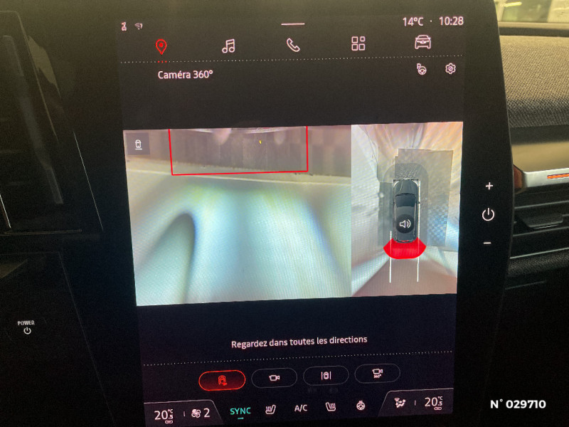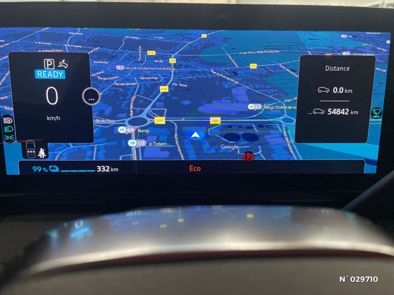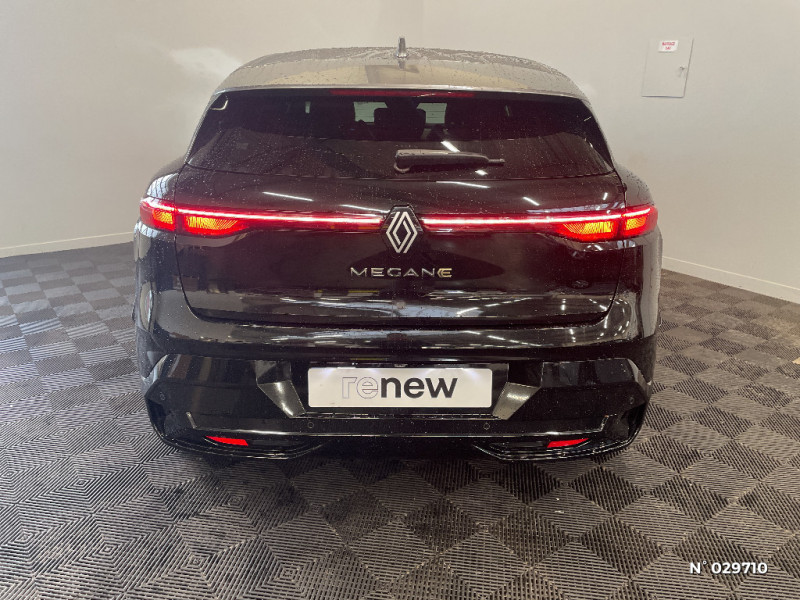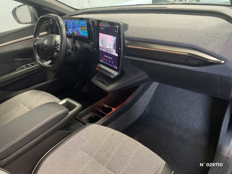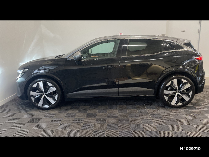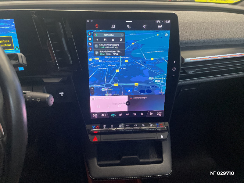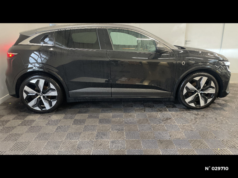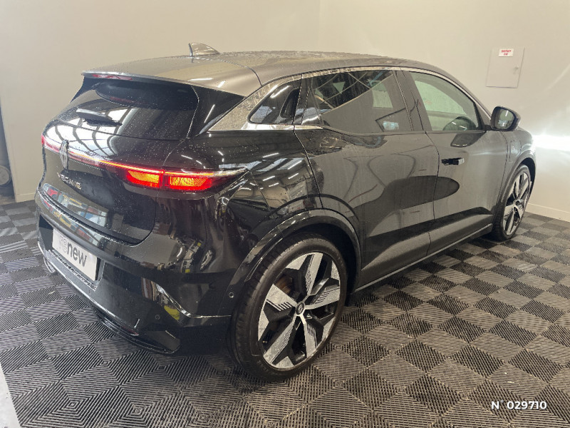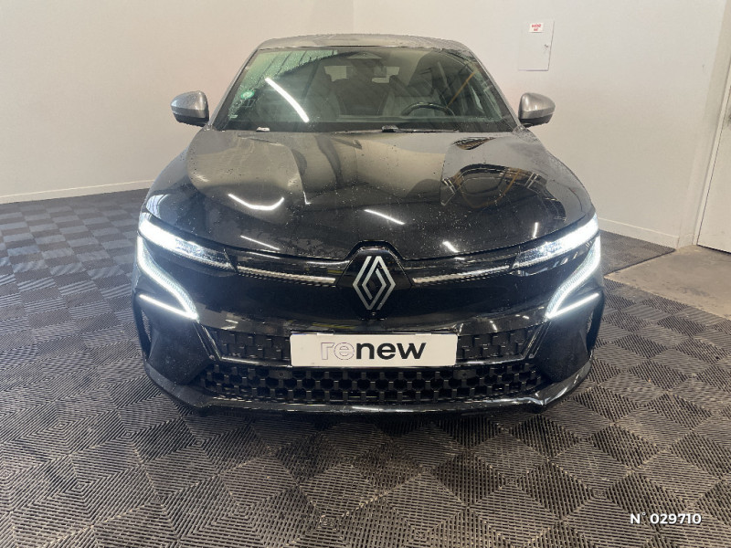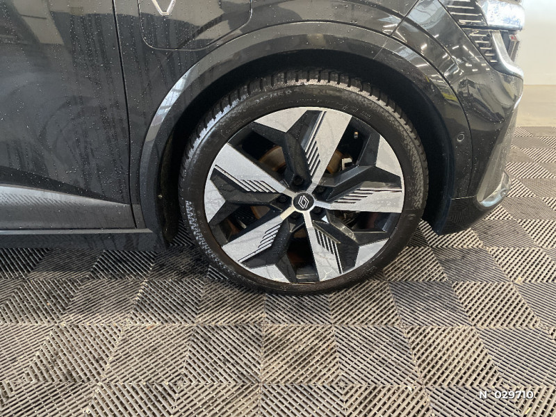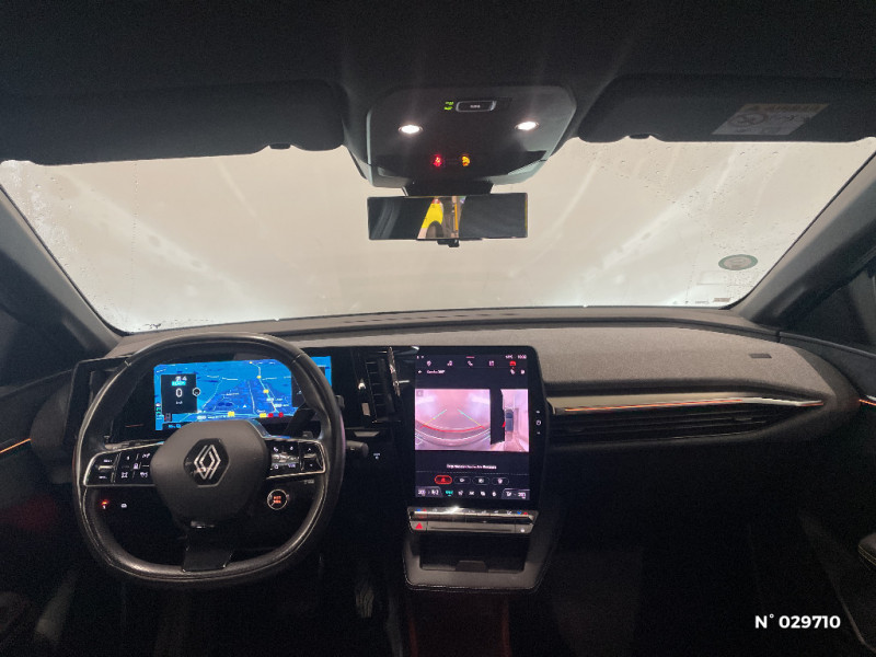 Freinage actif d'urgence urbain (piéton + cycliste + intersection) / Kit de gonflage / Sièges avec système ISOFIX / Câble de recharge pour Wallbox (mode 3 type 2, 5m) / Chargeur courant continu 130kW et courant alternatif 7kW (super) / 4 Ports USB (2 AV et 2 AR) / Carte Renault accès et démarrage mains libres / Réplication smartphone / Commutation automatique des feux de route/croisement / Rétroviseur jour/nuit automatique / Changement de mode de conduite via palettes au volant / Commutation automatique des feux et détecteur de pluie / Multi-sense / Peinture mono-ton / Bouclier AV Sport avec lame F1 ton caisse / Tableau de bord full numérique / Sellerie mixte simili cuir / textile recyclé ELZA REC gris chiné / Signature lumineuse AV / Tapis couleur standard / Système Multimédia openR link 12" : navigation, services Google, audio Arkamys Auditorium 6 HP / Purificateur d'air / Siège AV réglables 6 positions conducteur + lombaire / Volant chauffant / Ambiance interieure E3 / Antenne Requin / Bouclier AV sport avec lame F1 / Eclairage d'accueil portes AV / Jantes alliage diamantées 20" Soren / Poignées de portes affleurantes / Projecteurs full LED directionnels avec fonction antibrouillard / Airbags latéraux, milieu AV et rideaux / Alerte de distance de sécurité / Alerte et assistant maintien de voie / Alerte d'oubli de ceinture de sécurité / Bandeau full LED AR avec effet 3D "moiré" / Classe energetique A / Notice d'utilisation digitale embarqué dans le système multimédia du véhicule / Câble pour borne de recharge (mode 3 type 2 monophasé, 5m) / Console de rangement haute avec accoudoir / Détection de fatigue