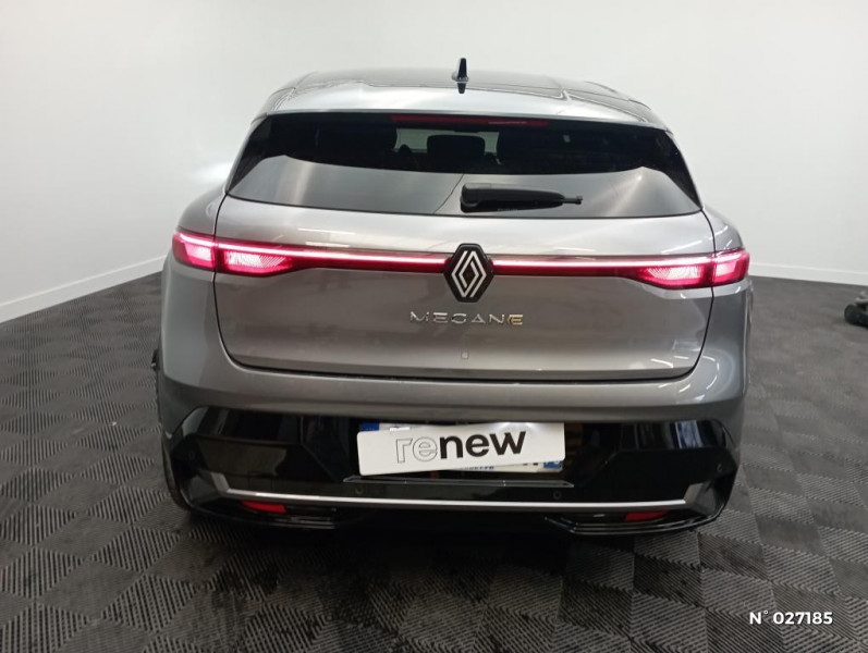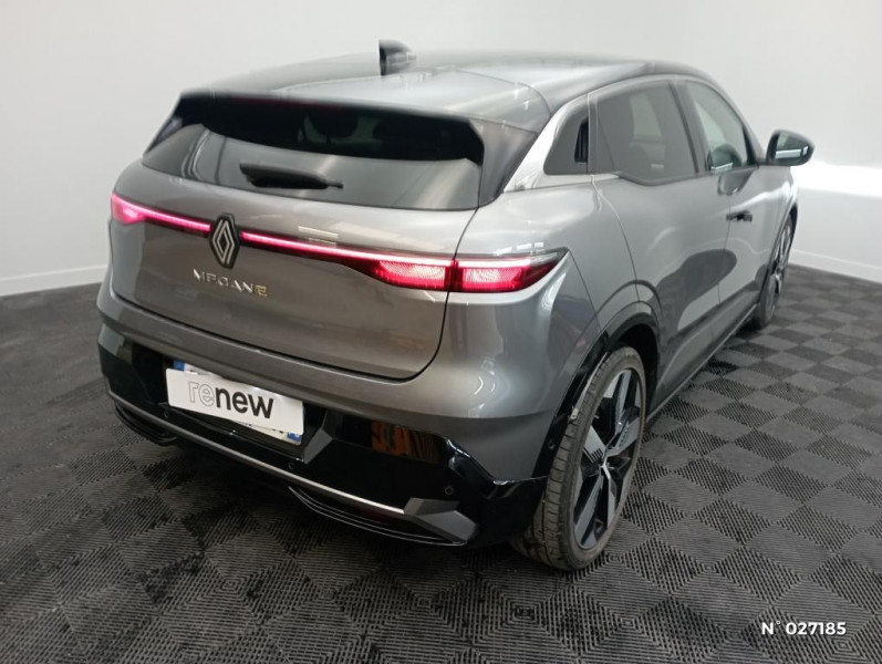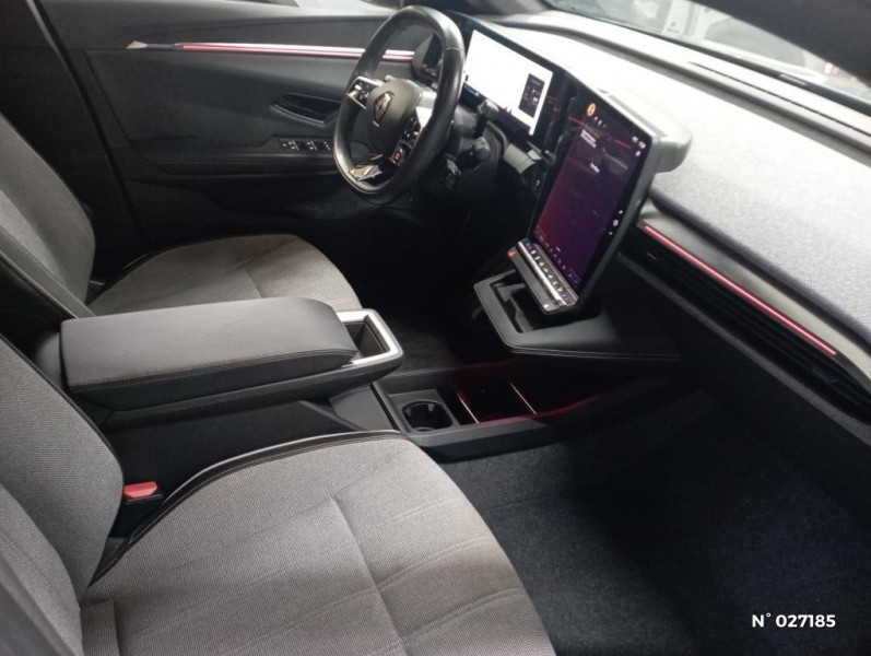 Purificateur d'air / Siège AV réglables 6 positions conducteur + lombaire / Volant chauffant / Ambiance interieure E3 / Antenne Requin / Bouclier AV sport avec lame F1 / Poignées de portes affleurantes / Projecteurs full LED directionnels avec fonction antibrouillard / Bandeau full LED AR avec effet 3D "moiré" / Détection de fatigue / Freinage actif d'urgence urbain (piéton + cycliste + intersection) / Kit de gonflage / Sièges avec système ISOFIX / Chargeur courant continu 130kW et courant alternatif 7kW (super) / Pompe à chaleur / Notice d'utilisation digitale embarqué dans le système multimédia du véhicule / Jantes alliage diamantées 20" Soren / Câble pour borne de recharge (mode 3 type 2 monophasé, 5m) / Classe energetique 0 / Alerte et prévention sortie de voie (dont urgence) / Système d'optimisation de la température batterie (charge rapide DC) / Gestion automatique des feux diurnes et des essuie-glaces / Changement d'intensité du freinage régénératif par palettes / Chargeur courant alternatif 7kW & courant continu 85 (standard) / 130 kW (super charge) (pic max) / Alerte d'oubli de ceinture de sécurité / Peinture opaque / Réplication smartphone / Commutation automatique des feux de route/croisement / Rétroviseur jour/nuit automatique / Changement de mode de conduite via palettes au volant / Commutation automatique des feux et détecteur de pluie / Multi-sense / Peinture mono-ton / Bouclier AV Sport avec lame F1 ton caisse / Tableau de bord full numérique / 4 Ports USB (2 AV et 2 AR) / Sellerie mixte simili cuir / textile recyclé ELZA REC gris chiné / Signature lumineuse AV / Système Multimédia openR link 12" : navigation, services Google, audio Arkamys Auditorium 6 HP / Airbags latéraux, milieu AV et rideaux / Alerte de distance de sécurité / Alerte et assistant maintien de voie / Carte Renault accès et démarrage mains libres / Console de rangement haute avec accoudoir