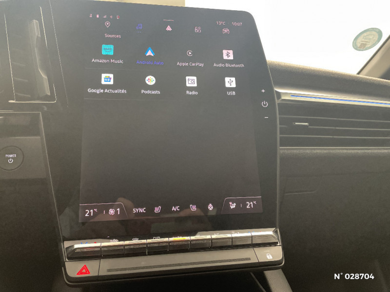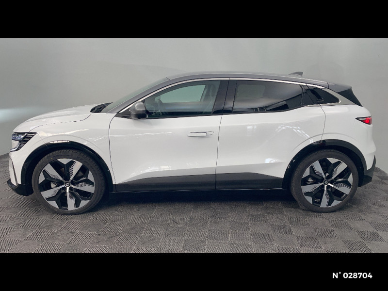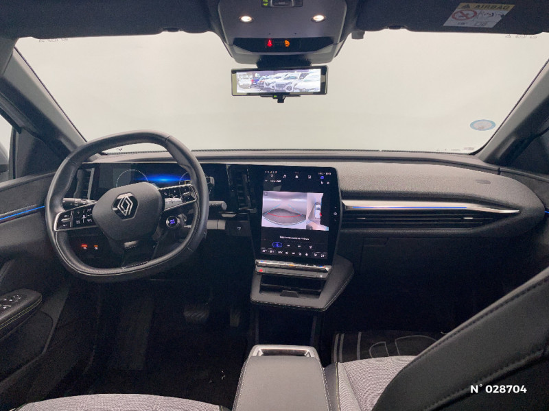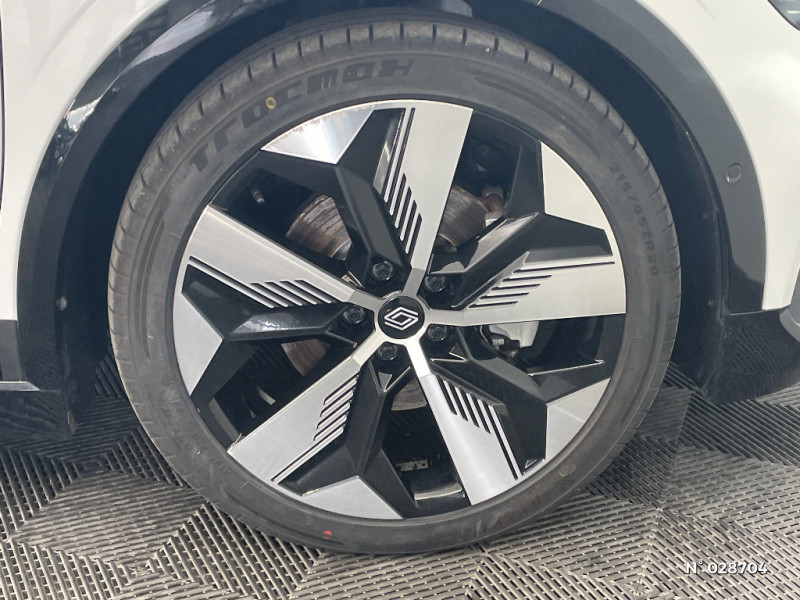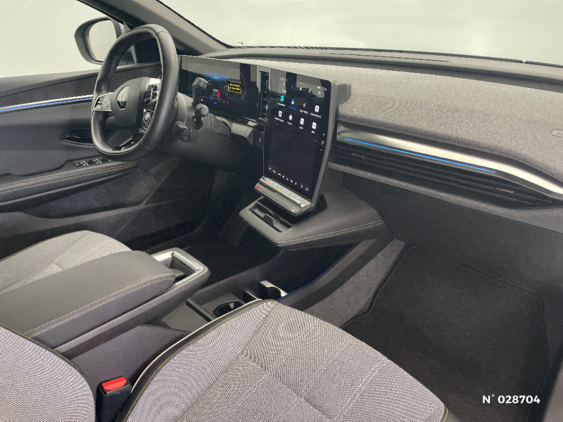 Sellerie mixte simili cuir / textile recyclé ELZA REC gris chiné / Réplication smartphone / Commutation automatique des feux de route/croisement / Signature lumineuse AV / Tapis couleur standard / Système Multimédia openR link 12" : navigation, services Google, audio Arkamys Auditorium 6 HP / Airbags latéraux, milieu AV et rideaux / Alerte de distance de sécurité / Alerte et assistant maintien de voie / Alerte d'oubli de ceinture de sécurité / Bandeau full LED AR avec effet 3D "moiré" / Détection de fatigue / Freinage actif d'urgence urbain (piéton + cycliste + intersection) / Kit de gonflage / Sièges avec système ISOFIX / Câble de recharge pour Wallbox (mode 3 type 2, 5m) / Chargeur courant continu 130kW et courant alternatif 22kW (optimal) / Classe energetique A / Notice d'utilisation digitale embarqué dans le système multimédia du véhicule / Câble pour borne de recharge (mode 3 type 2 triphasé, 5m) / Rétroviseur jour/nuit automatique / Changement de mode de conduite via palettes au volant / Commutation automatique des feux et détecteur de pluie / Multi-sense / Peinture mono-ton / Bouclier AV Sport avec lame F1 ton caisse / Tableau de bord full numérique / 4 Ports USB (2 AV et 2 AR) / Carte Renault accès et démarrage mains libres / Console de rangement haute avec accoudoir / Purificateur d'air / Siège AV réglables 6 positions conducteur + lombaire / Volant chauffant / Ambiance interieure E3 / Antenne Requin / Bouclier AV sport avec lame F1 / Eclairage d'accueil portes AV / Jantes alliage diamantées 20" Soren / Poignées de portes affleurantes / Projecteurs full LED directionnels avec fonction antibrouillard