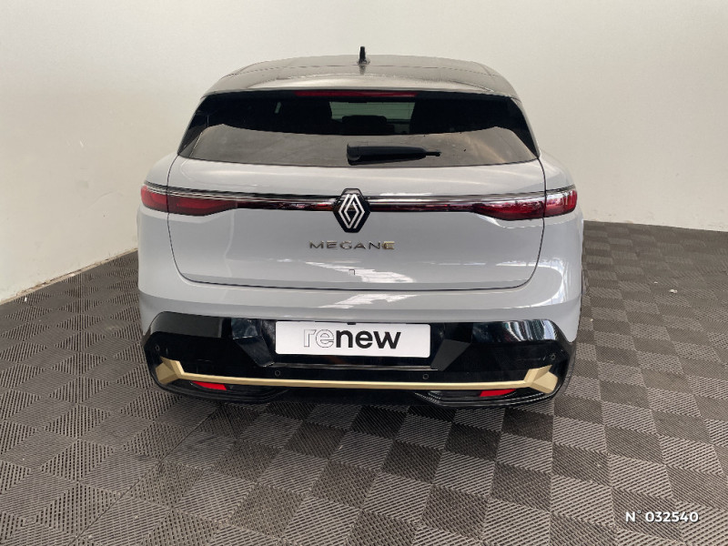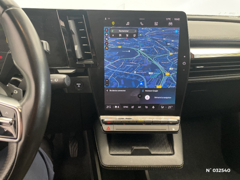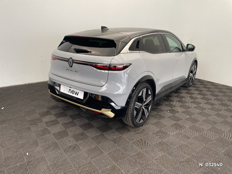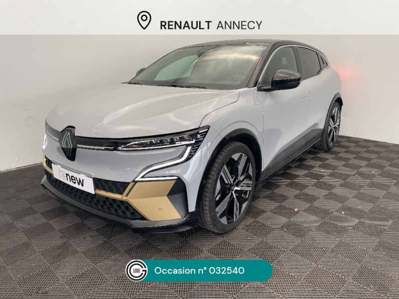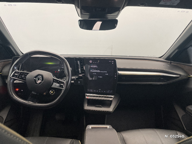 4 Ports USB (2 AV et 2 AR) / Carte Renault accès et démarrage mains libres / Console de rangement haute avec accoudoir / Freinage actif d'urgence urbain (piéton + cycliste + intersection) / Kit de gonflage / Câble de recharge pour Wallbox (mode 3 type 2, 5m) / Chargeur courant continu 130kW et courant alternatif 7kW (super) / Classe energetique A / Sellerie Cuir Riviera Noir Titane / Notice d'utilisation digitale embarqué dans le système multimédia du véhicule / Jantes alliage diamantées 20" Enos / Câble pour borne de recharge (mode 3 type 2 monophasé, 5m) / Sièges avec système ISOFIX / Lame F1 Gold / Purificateur d'air / Siège AV réglables électriquement et massant, 6 positions + lombaire / Volant chauffant / Ambiance interieure E4 / Antenne Requin / Bouclier AV sport avec lame F1 / Eclairage d'accueil portes AV / Lame F1 Golf / Poignées de portes affleurantes / Projecteurs full LED directionnels avec fonction antibrouillard / Sellerie Cuir Riviera Gris noir titane / Signature lumineuse AV / Tapis couleur standard / Système Multimédia openR link 12" : navigation, services Google, audio premium Harman Kardon 9HP / Airbags latéraux, milieu AV et rideaux / Alerte de distance de sécurité / Alerte et assistant maintien de voie / Alerte d'oubli de ceinture de sécurité / Bandeau full LED AR avec effet 3D "moiré" / Détection de fatigue / Réplication smartphone / Commutation automatique des feux de route/croisement / Jantes alliage 20'' Noir brillant / Rétroviseur jour/nuit automatique / Radars AV, AR et latéraux / Changement de mode de conduite via palettes au volant / Commutation automatique des feux et détecteur de pluie / Multi-sense / Peinture bi-ton / Tableau de bord full numérique